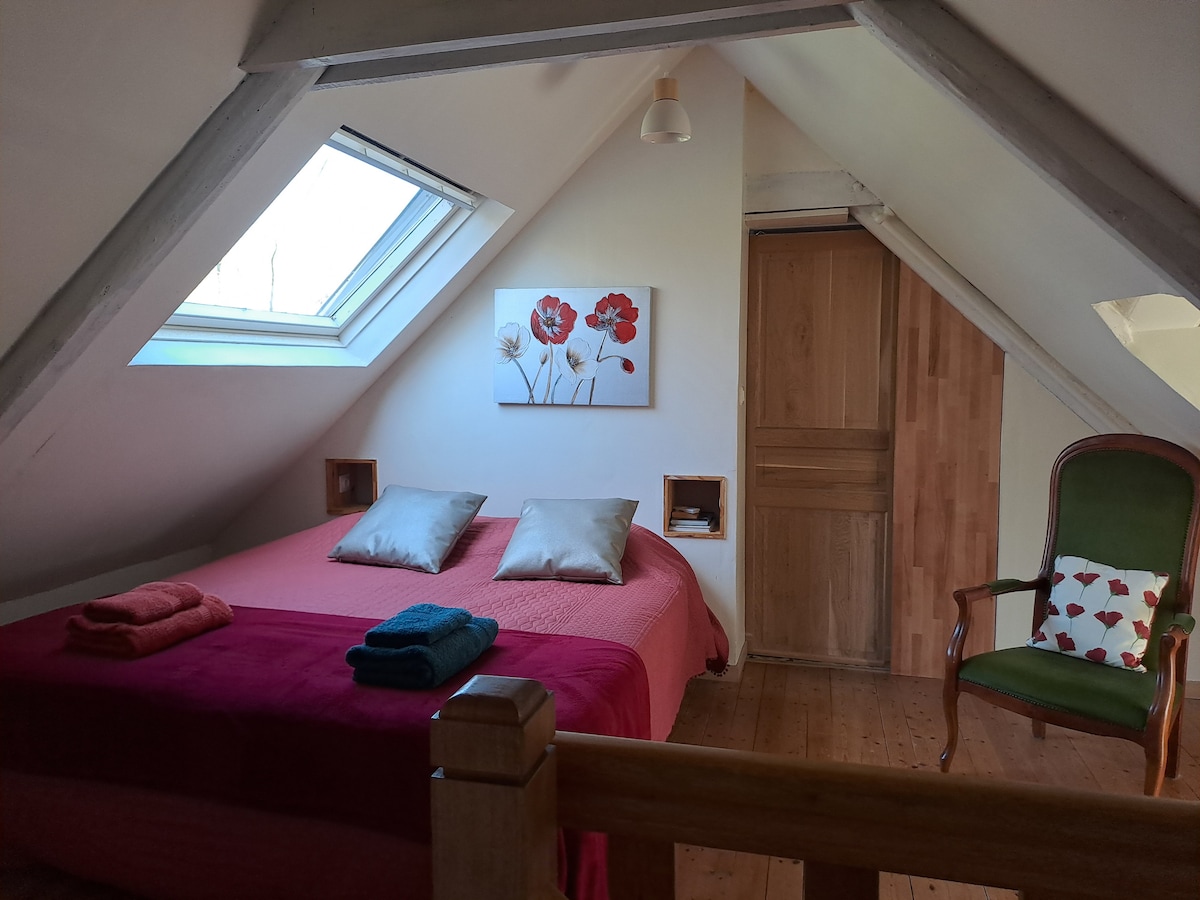 Disfruta del encantador entorno de este alojamiento romántico en plena naturaleza. Le seducirá un acogedor salón enfrente enfrente con vistas a la zona de cocina comedor. El dormitorio principal compuesto por una amplia cama (160 x 200) también ofrece un montón de almacenamiento (armarios+cómoda para el cabello) y un baño con ducha contiguo. Habitación en V delantera en 2x80. Amplia terraza en la azotea en la parte trasera para disfrutar plenamente del ambiente natural del típico pueblo de St Nicolas des Eaux.