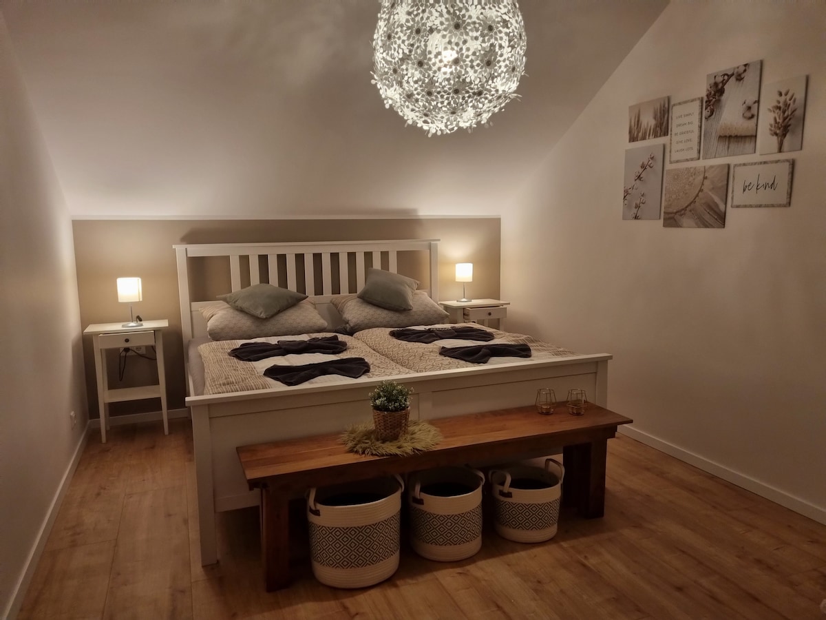 Siéntate y relájate en este alojamiento tranquilo y elegante. He diseñado el interior con los más altos estándares para que puedas disfrutar de la ubicación tranquila pero cercana a la ciudad. Para mí es especialmente importante que nuestros huéspedes disfruten de un aspecto moderno y de mucha comodidad. El apartamento está completamente amueblado, espero un intercambio cercano si te falta algo y si te gusta. ¡Te espero!