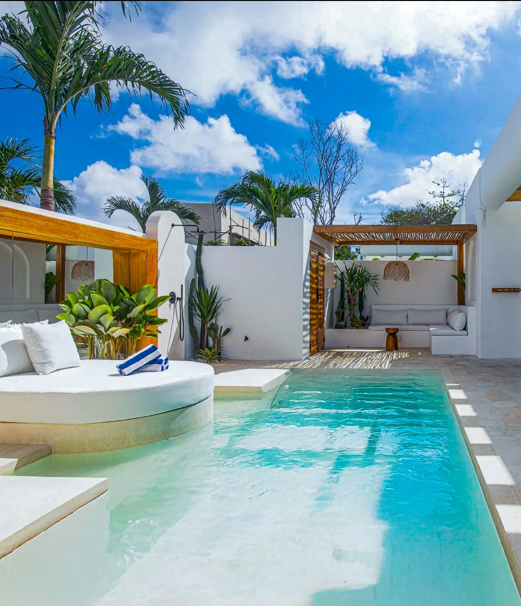 Escapate a tu santuario tropical privado, diseñado pensando en el romance y la relajación. Ubicada en una zona tranquila de Bali, esta elegante villa de un dormitorio combina curvas de inspiración mediterránea con una elegancia moderna, perfecta para parejas y recién casados que buscan una escapada de ensueño. Ya sea que te despiertes con la luz suave del sol a través de las cortinas, cenes al aire libre bajo las estrellas o disfrutes de un baño relajante en tu ducha de diseño, cada detalle está pensado para ofrecer comodidad, estilo y conexión.