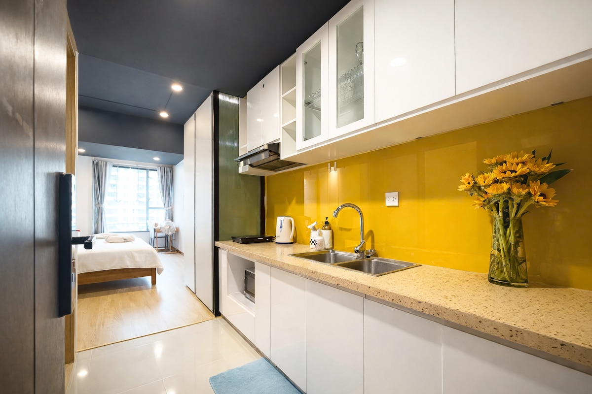 Un estudio raro en Delasol - TV de 55 pulgadas - Vista al río - Cocina totalmente equipada El anfitrión limpia a fondo todas las salidas Nos comprometemos a lavar la ropa de cama con detergente OMO, seguro para la piel. ¡Sin lejía! Lavamos el baño con jabón y agua caliente desde la pared hasta el piso cada salida, no solo rociamos y limpiamos. Por lo tanto, la limpieza no se realizará más de 2 horas.