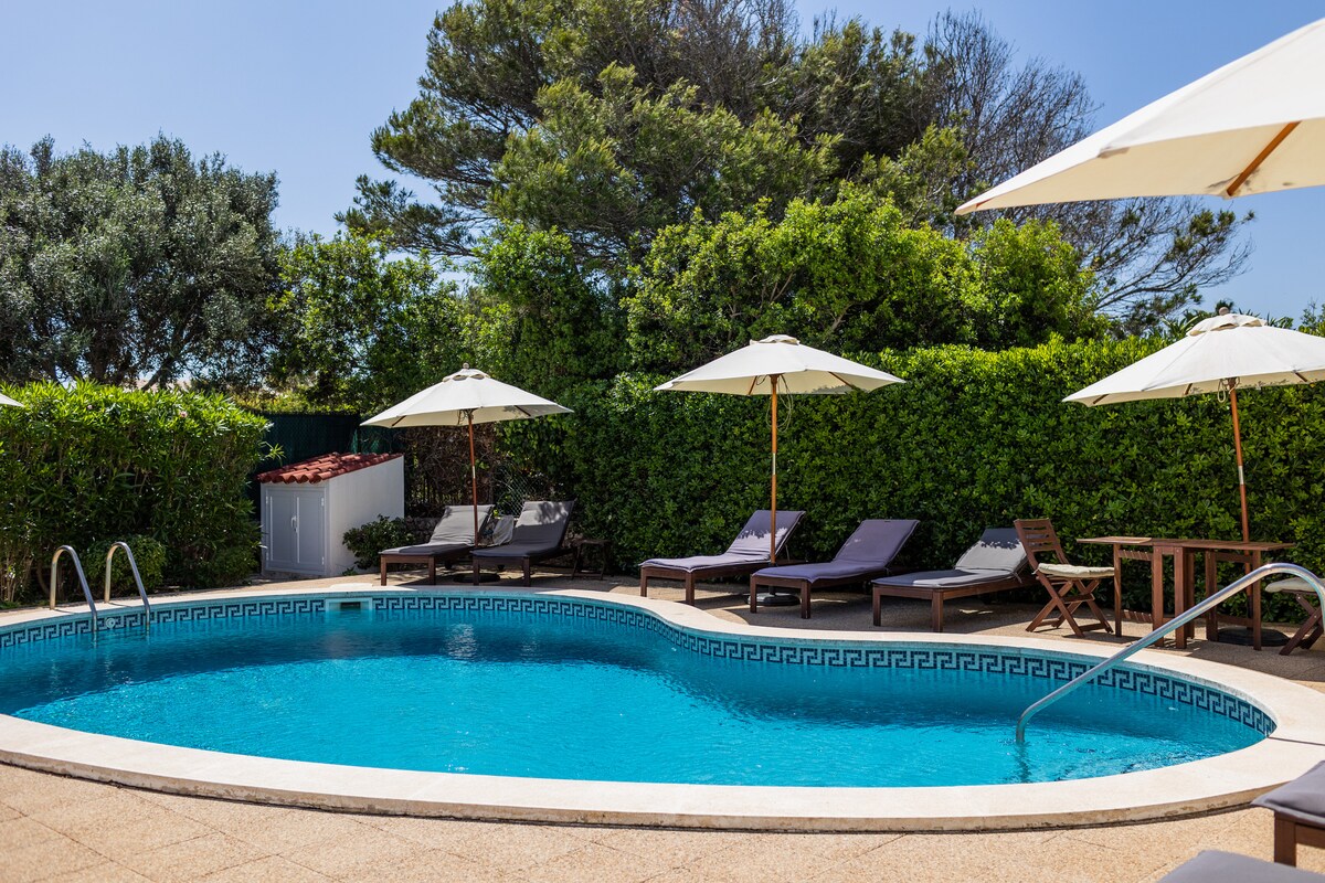 Villa menorquina tradicional completamente reformada con jardín privado y piscina. Esta villa, que goza de una ubicación privilegiada en el Paseo Marítimo y que ha sido reformada con un alto nivel en todas partes, es una opción perfecta. La parcela con vistas parciales al mar está rodeada de jardines recién ajardinados, setos maduros y una gran puerta eléctrica de madera maciza para mayor privacidad. Hay 2 supermercados a 3 minutos a pie, el mar (rocas y calas) a 2 minutos y la playa de Binibeca a 10 minutos a pie.