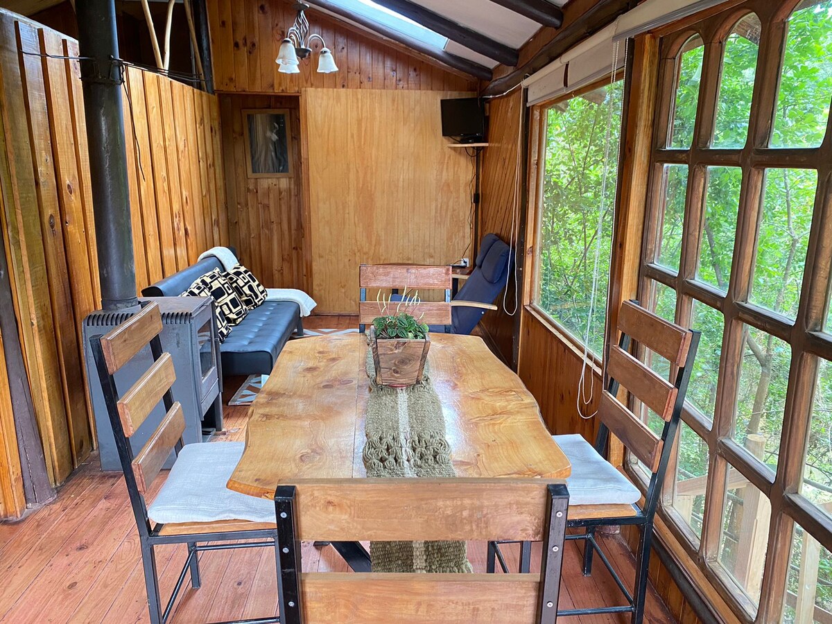 Cabaña en bosque nativo, Los Lleuques,ruta Nevados