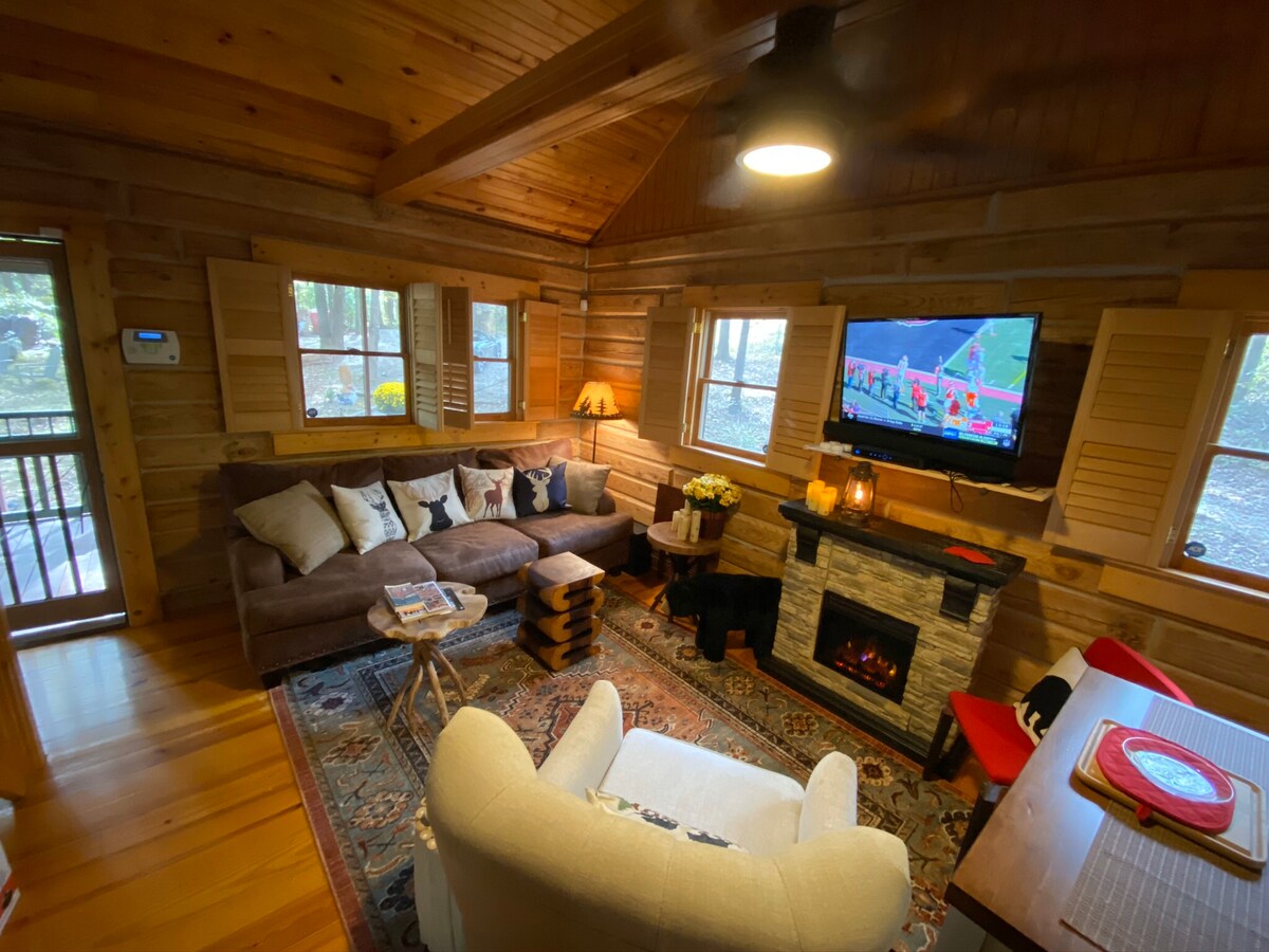 Cabaña de madera recientemente remodelada con almohadas, sábanas y toallas nuevas. Propiedad arbolada junto al arroyo. Disfruta del porche delantero o de la terraza trasera con un spa de 14 pies, fogata y parrilla en un entorno tranquilo y boscoso. El pase gratuito del parque estatal ahorra $ 7 días. Abajo principal con cama tamaño king. 2 camas tamaño queen en el dormitorio tipo loft. Chimenea eléctrica con 5 configuraciones, aire acondicionado/calefacción, wifi/Internet de alta velocidad, TV INTELIGENTE con barra de sonido Bluetooth, Direct TV, lavarropas/secarropas. Máquina de hielo. SIEMPRE OFRECEMOS CHECK-IN Y CHECK-OUT ANTICIPADOS CUANDO ESTÁN DISPONIBLES.