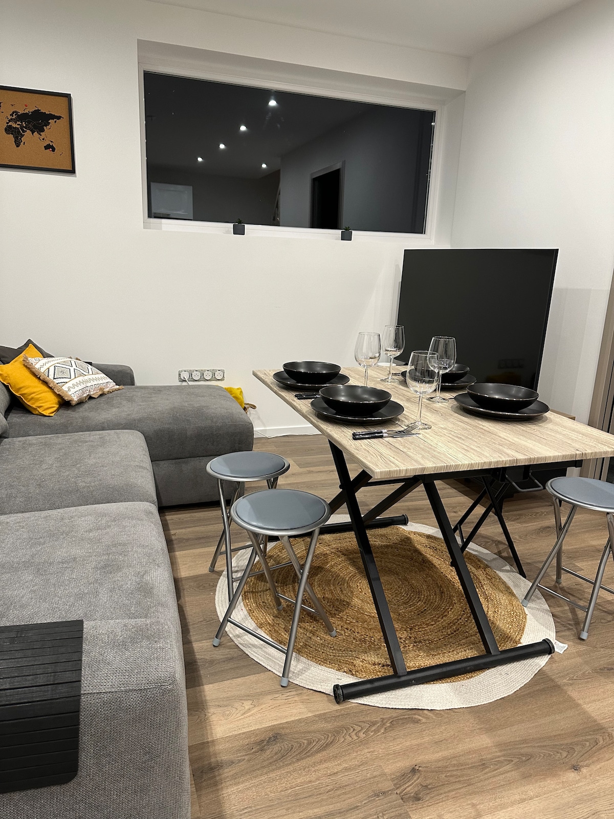 Bonito monoambiente nuevo y luminoso situado a 7 km de Colmar en un pueblo tranquilo con vistas panorámicas a los Vosgos, cerca de la autopista. Ubicado en el primer piso, incluye: - una cocina equipada: vitrocerámica, horno, campana extractora, heladera, microondas, cafetera dolce gusto, hervidor de agua y tostadora, toda la vajilla necesaria -una sala de estar con espacio de almacenamiento, TV, cama convertible colchón confort 160 cm, cama hecha a la llegada - un baño con toallas. Llegada autónoma.