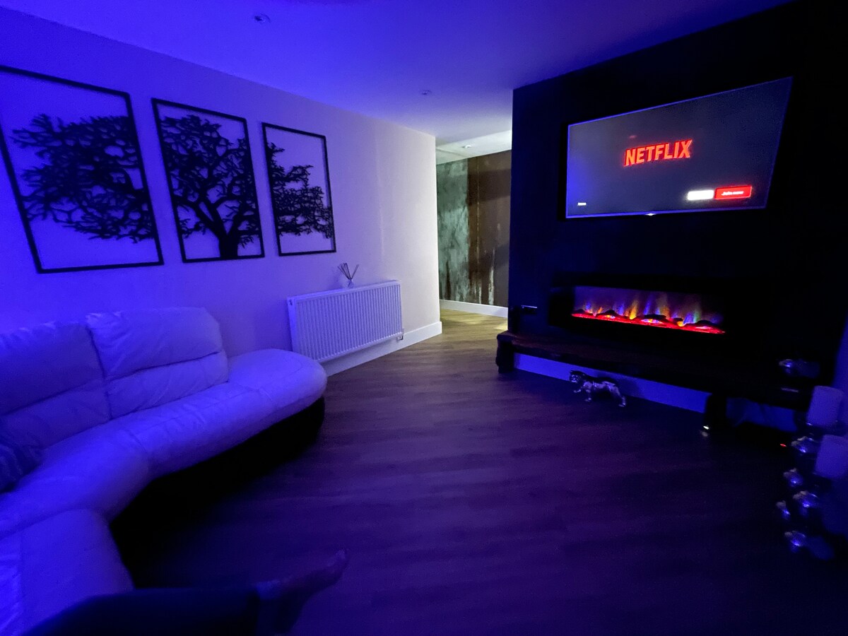 Welcome to our spacious 2-bedroom retreat with two private parking spaces – ideal for contractors, families, and groups. Relax in the private hot tub, enjoy friendly PS4 battles or a game of darts, and unwind together after a busy day. Additional street parking is available if needed. Conveniently located near Burton train station and nearby airports, with easy access to the A38, A50, and M1. Explore the beautiful Peak District, Alton Towers, and discover local pubs, restaurants, and nightlife.