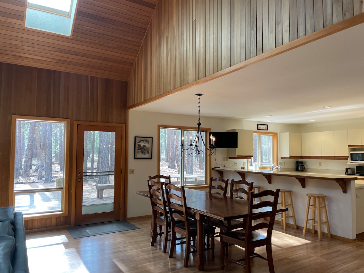 The Ridge Haus is our family's home away from home. The perfect place to breathe in the fresh pine scented air, exhale and explore with family and friends. We sought out to create a comfortable and cozy space to gather and relax with all of the comforts of home. Newly updated bathrooms, comfy beds, and designer touches offer complete respite amongst the trees in beautiful Central Oregon. **Please Note** The wood burning fireplace is currently nonoperational.