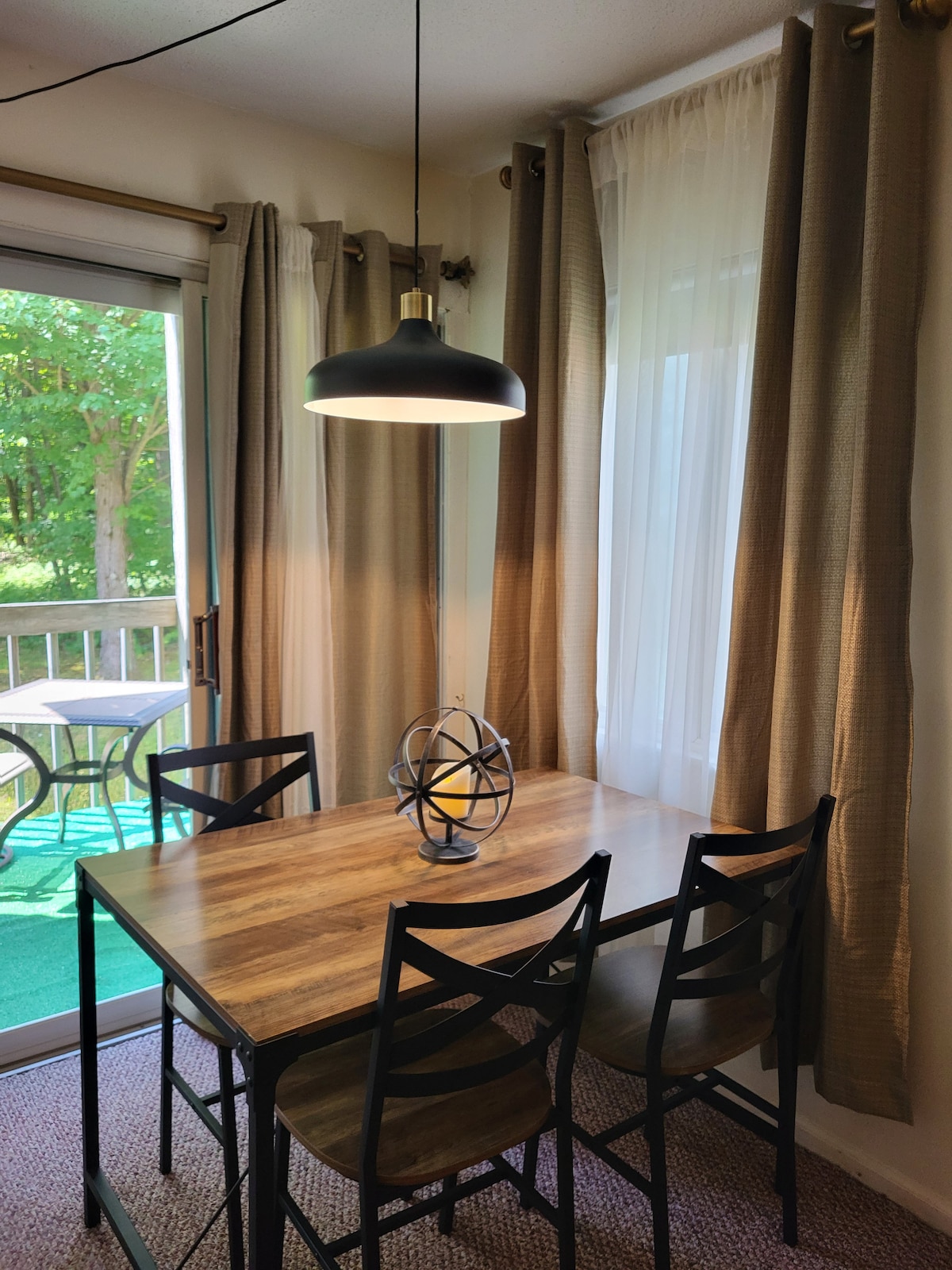 Relájate, relájate y recarga energías en este tranquilo condominio de montaña ubicado en la estación de esquí Blue Knob. Ven y disfruta de un día en las pendientes, el campo de golf o explora las muchas rutas de senderismo de Blue Knob. Cerca de Altoona, Pensilvania, también tiene mucho que ver y hacer, ¡especialmente para los amantes de la gastronomía y los adictos a las compras! Este condominio totalmente abastecido cuenta con todo lo necesario para sentirte en casa lejos de casa, incluida una cocina completa, parrilla de gas al aire libre, un espacio de trabajo e impresora, WiFi, TV por Internet y sábanas suaves y frescas.