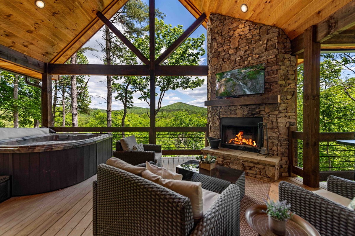 Impresionante cabaña con vistas a la montaña durante todo el año con un entorno privado en el lado de la montaña. 2 dormitorios con un gran plano de piso abierto con una chimenea de leña y una gran área de loft con 2 camas . La cabaña tiene un gran porche con mosquitero con terraza abierta contigua para disfrutar de las impresionantes vistas mientras te relajás en el jacuzzi. También podés disfrutar de senderismo, tubing, pesca, el lago Nottley, el lago Chatuge o pasear por Helen o Blue Ridge. Las opciones y vistas son infinitas. Licencia UCSTR n.º 028724