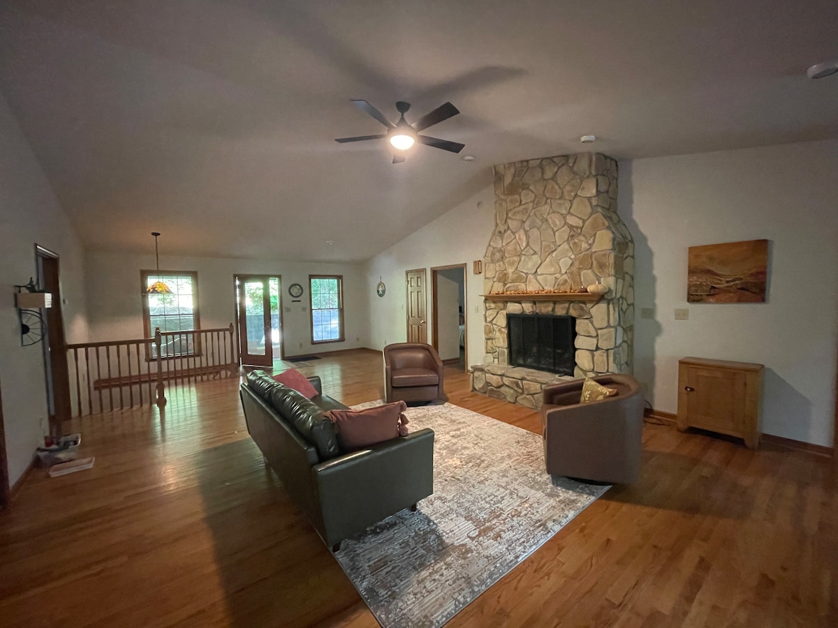 Relájate y disfruta del aire fresco de las montañas en Tranquility. Esta casa de troncos estilo chalet es perfecta para mecerse en el porche delantero, contemplar las estrellas desde el nuevo jacuzzi en el porche trasero cubierto o relajarse junto al fuego en la hermosa sala de estar con techo abovedado. Incluye TV de 65 pulgadas en la sala de estar, TV grandes en todos los dormitorios, internet de fibra, lavandería, parrilla y chimenea. Situado en la entrada norte de las cataratas Fall Creek y a solo 5 minutos en coche de las cascadas y del centro de naturaleza.