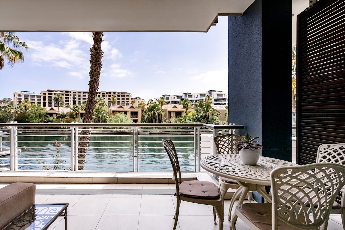 Hermoso apartamento con vistas al canal y a las palmeras. Acceso al spa, que consta de piscina cubierta climatizada, jacuzzi, sala de vapor y sauna, y gimnasio totalmente equipado. A cinco minutos a pie de la isla de Intaka, un humedal de 16 ha y un santuario de aves, un paraíso para los pájaros, fotógrafos o aquellos que solo quieren disfrutar de un paseo tranquilo por la naturaleza. Reserva un viaje en ferry que viaja por el Gran Canal y alrededor de la isla de Intaka. Explora las playas, las granjas vinícolas, la vida nocturna de la ciudad y los compras.