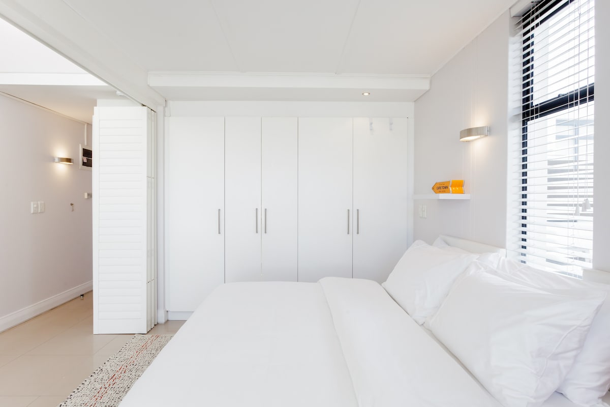 Te damos la bienvenida a nuestro nuevo apartamento, moderno y decorado con buen gusto, que, francamente, tiene la mejor ubicación y las mejores vistas que puedas imaginar mientras visitas Ciudad del Cabo. ¿Crees que las fotos son bonitas de día? Contempla las puestas de sol y las encantadoras luces de la ciudad y del paseo marítimo por la noche. A solo 3 plantas por debajo, la terraza de la piscina del piso 27 y el área de fitness al aire libre te ofrecen unas vistas icónicas perfectas de 360 grados. Sal a la bulliciosa Bree Street... ¡GUAU! *Cero cortes de energía en este edificio.