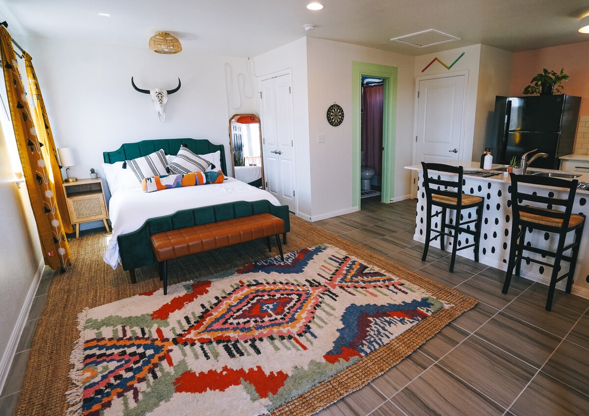 ¡Escapada ecléctica en el sureste de Austin! Disfruta de una casa de huéspedes privada de 1 dormitorio y 1 baño completa con una máquina de café expreso, todos los elementos esenciales de la cocina, wifi rápido, TV con streaming, juegos de arcade y de mesa, y una cama tamaño queen adicional. En un barrio encantador y seguro con un parque de camiones de comida, parques infantiles y senderos naturales justo afuera. A solo 15 minutos del Circuito de las Américas, el aeropuerto de Austin, South Congress, el parque estatal McKinney Falls y a menos de 20 minutos del centro de Austin.