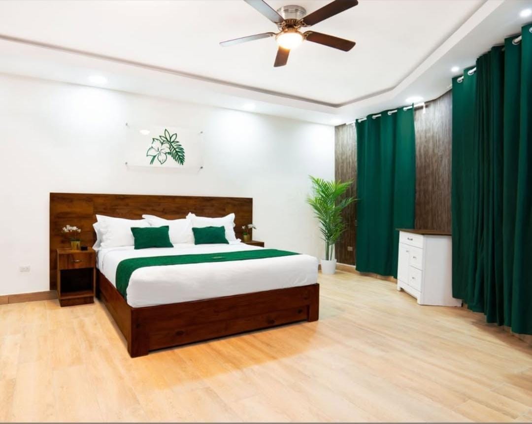 Habitación acogedora y tranquila ubicada en nuestro aparta-hotel frente a la playa de Juan Dolio, diseñada para un descanso relajante. Cuenta con aire acondicionado y WiFi, ofreciendo un ambiente cómodo y funcional. Ideal para familias, parejas o grupos de amigos que buscan privacidad, confort y una ubicación privilegiada frente al mar, con fácil acceso a la playa y espacios pensados para disfrutar una estadía agradable y sin complicaciones.