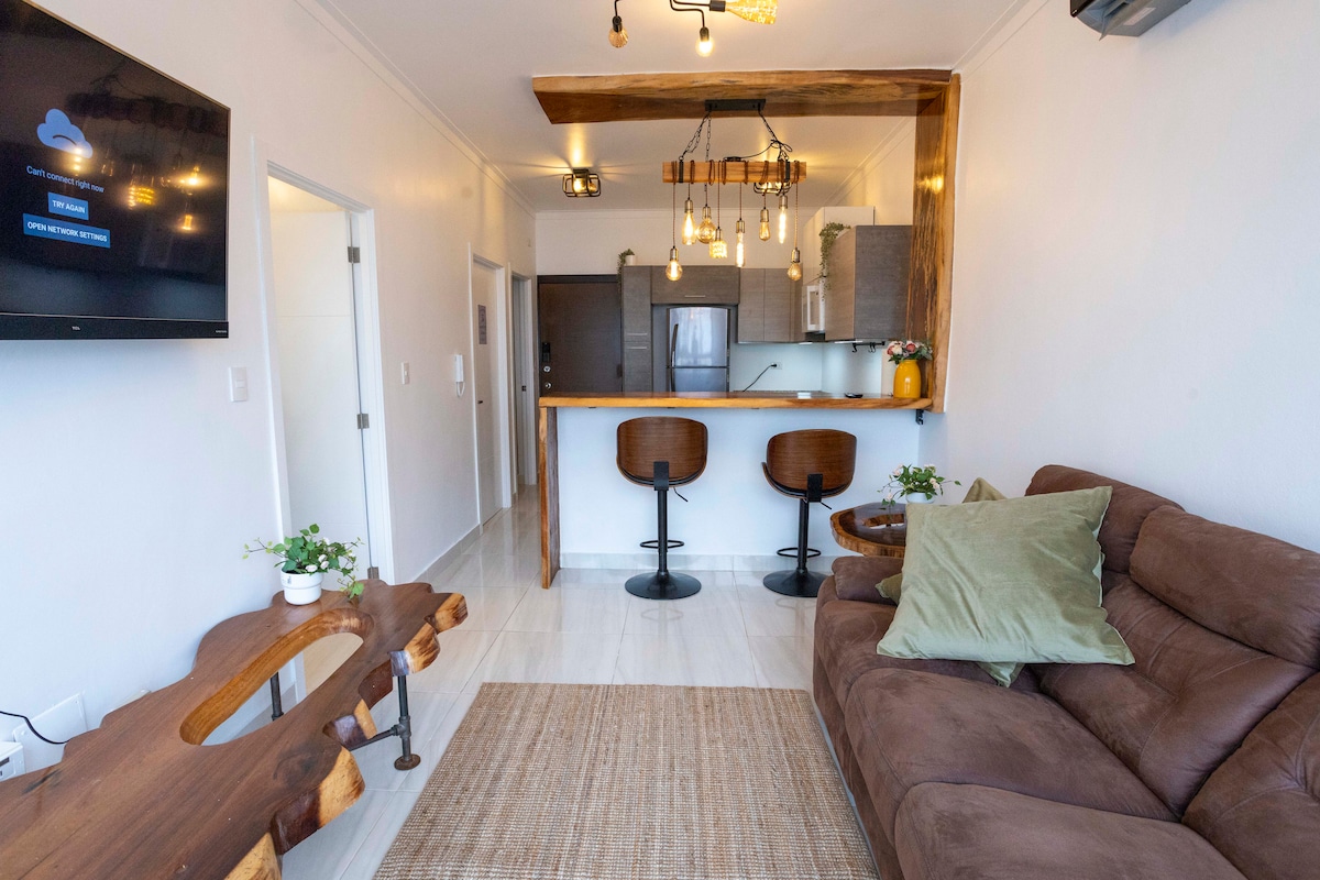 Bienvenido a nuestro acogedor apartamento a minutos de la Zona Colonial, la playa y el aeropuerto. Rodeado de comodidades como supermercados, bancos y restaurantes. Nuestro alojamiento cuenta con un diseño moderno, comunicación impecable, limpieza perfecta y entretenimiento gratuito con Netflix. Nuestros huéspedes terminan elogiando la belleza, limpieza y la atención del anfitrión, con un 99.9% que volvería a hospedarse. ¡Esperamos hacer tu visita inolvidable!.