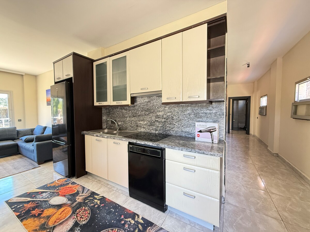 Nuestro departamento tiene una ubicación céntrica, en una calle tradicional de Bodrum. Te permite explorar todas las bellezas de Bodrum a pie. Cómodo y adecuado para vivir durante todo el año. Cerca del mar, tiendas y lugares de entretenimiento, terminal de autobuses, lugares históricos, puerto de cruceros... (5 minutos a todas partes) Tiene una cocina equipada, dos dormitorios y aire acondicionado para cada habitación. Es posible alojar a cuatro adultos cómodamente.