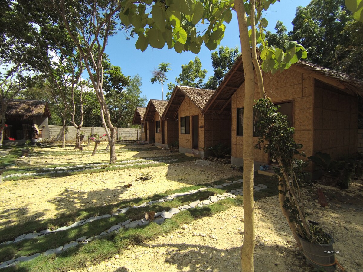 Our environmentally friendly Native Villas nestles at a plateau 50 m above sea level on a 2000 m² location in upper Laya near Baclayon. It is a 15 minute walk to the beach resp. highway . 4 km ride to Baclayon pier where boats leave for idyllic Pamilican Island. Loboc river , Tarsier Sanctuary are only 25 min away from our place. Breakfast and dinner will be served in our own restaurant. Restaurant open from 7 am til 10 pm.