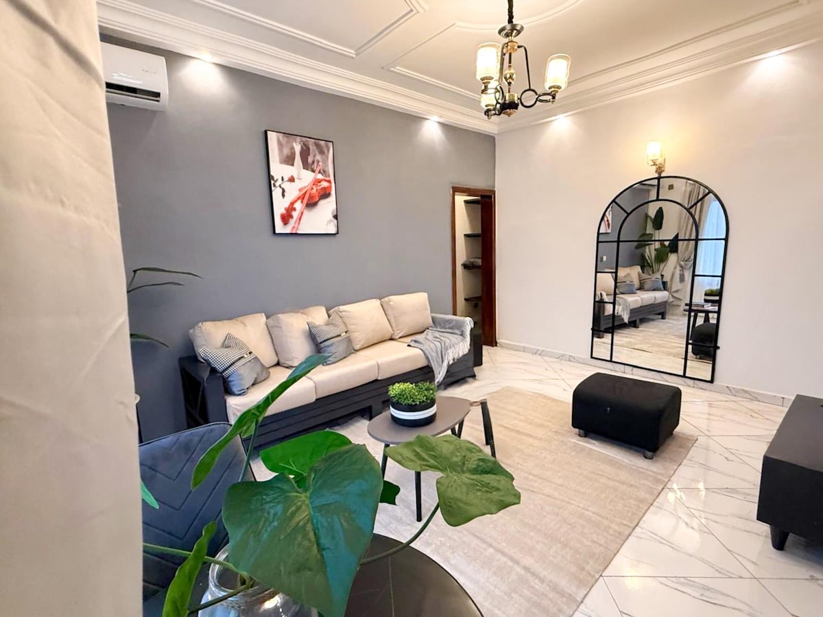 Relájate con toda la familia en este tranquilo apartamento. Tienes wifi gratuito, aire acondicionado en todos los dormitorios y sala de estar, un televisor inteligente con canal+, una gran cocina, dos balcones, generador gratuito solo para equipos de bajo consumo (no se admiten aire acondicionado), bonitas vistas a la ciudad, un cuidador durante la noche, una torre de agua para garantizar que el grifo nunca esté seco, un supermercado muy moderno a 5 minutos a pie. La electricidad será prepagada por ti. Los servicios de limpieza están disponibles si es necesario y se cobran. Servicios de lavandería también. Bienvenidos
