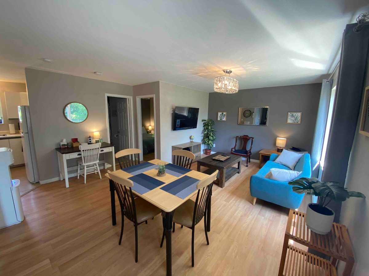 Kick back and relax in this calm stylish newly constructed modern 2 bedroom on historic La Vase river attached to Lake Nipissing excellent fishing on federation snowmobile trail 3 mins to golf course 3 mins to casino 3 mins to kate pace way walking trails High end appliances High speed internet,large smart tv boat launch docks fire pit gazebo swimming pool ample parking dedicated work space kayaking canoeing access to all deliveries. very serene and private also check out Copperhead Cove B