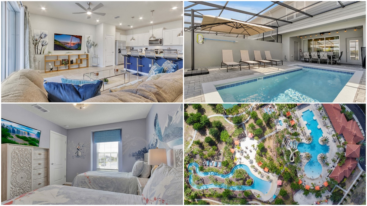 ¡Relájate en esta GRAN CASA DE DISEÑO DE LUJO TOTALMENTE RENOVADA en el famoso REGAL OAKS RESORT con BR TEMÁTICO cerca de DISNEY WORLD en ORLANDO FLORIDA! ¡Disfruta de la IMPRESIONANTE VISTA AL LAGO, JACUZZI PRIVADO, NUEVOS MUEBLES CON ESTILO, PISCINA CLIMATIZADA, toboganes de agua, bar junto a la piscina, SALA DE JUEGOS, MESAS DE BILLAR, ping pong, restaurante, GIMNASIO, cancha de tenis y guardia de seguridad 24/7! - Camina 5 minutos hasta el parque de atracciones Old Town y World Food Trucks. - A 8 minutos en coche de DISNEY, a 20 minutos de UNIVERSAL STUDIO, a 15 minutos de SEAWORLD y DISNEY SPRINGS.