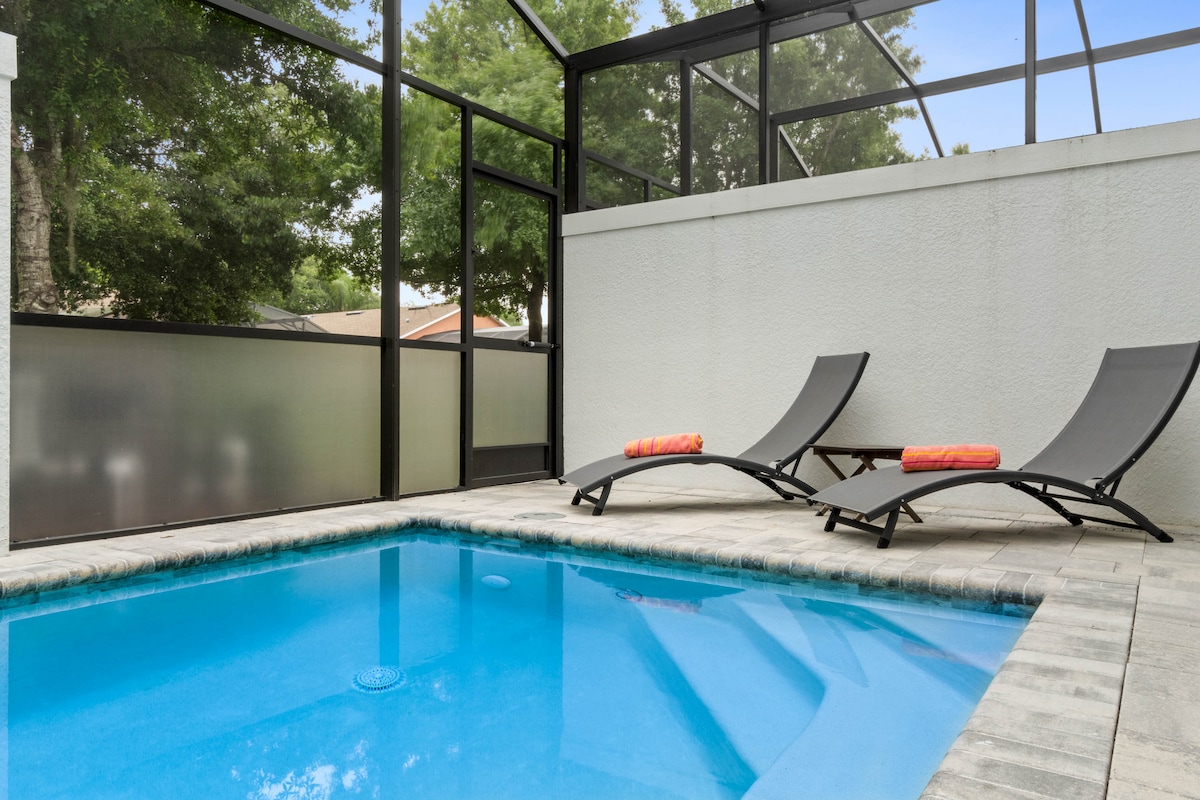 Su oasis moderno le espera! Esta casa nueva tiene piscina privada, ideal para relajarse tras un día en los parques, a 20 mins de Magic Kingdom. Descanse con Smart TV y Wi-Fi de alta velocidad o cocine en la cocina equipada. Este espacio está diseñado con estilo y confort para la aventura Disney de su grupo. (¡Nota: La calefacción de la piscina está incluida! Por seguridad, el calentador se desactiva por debajo de 60°F).