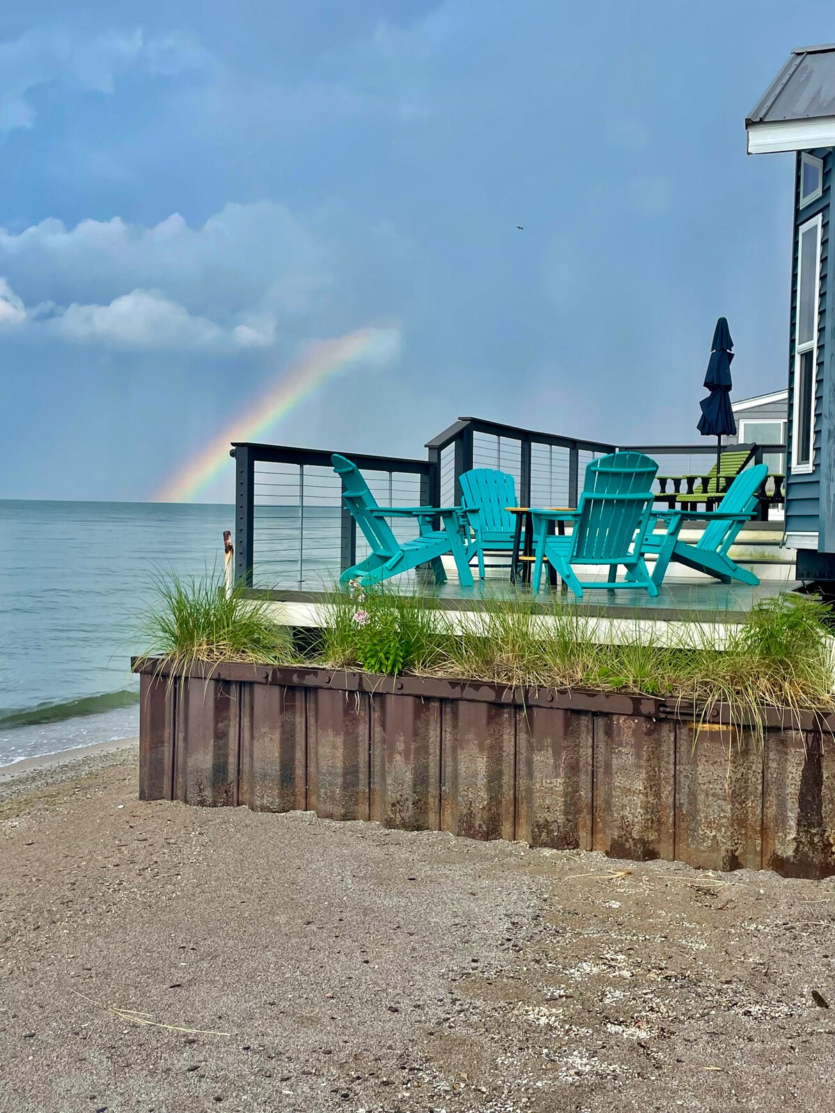 If you “glamp” when you camp, then you’ll appreciate the finer amenities of this boutique style cottage on Lake Erie. Arguably the best views in this tiny cottage community, The Kiss n Tell graces a bluff overlooking the lake - stunning views from every room. Wake to the sound of waves crashing the shore, sunbathe in loungers, dine while the sun glistens on the water, star gaze from the hot tub or sit by a lakeside fire (firewood provided). Endless options w/out leaving this beautiful space.