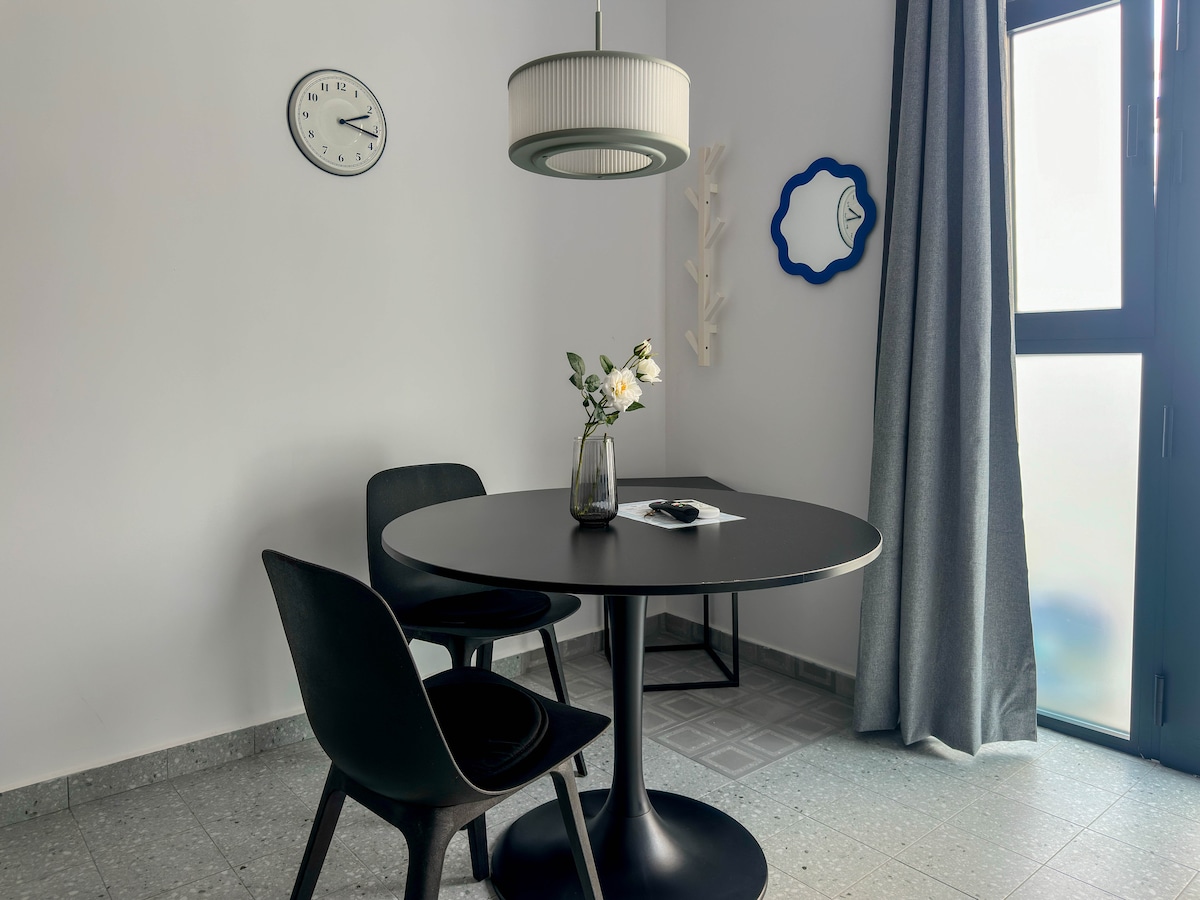Modern apartment with 2 bedrooms and 2 bathrooms (one en suite). Ideal for couples or families who value privacy. It features a fully equipped kitchen, a cozy living-dining room with piano, guitar, HBO, board games and a terrace ideal for relaxing. Located in a quiet neighborhood, it's ideal for unwinding after a day of sightseeing. Comfortable and functional, with excellent public transport links, perfect for both short and long stays thanks to the high-speed Wi-Fi and the remote work area.