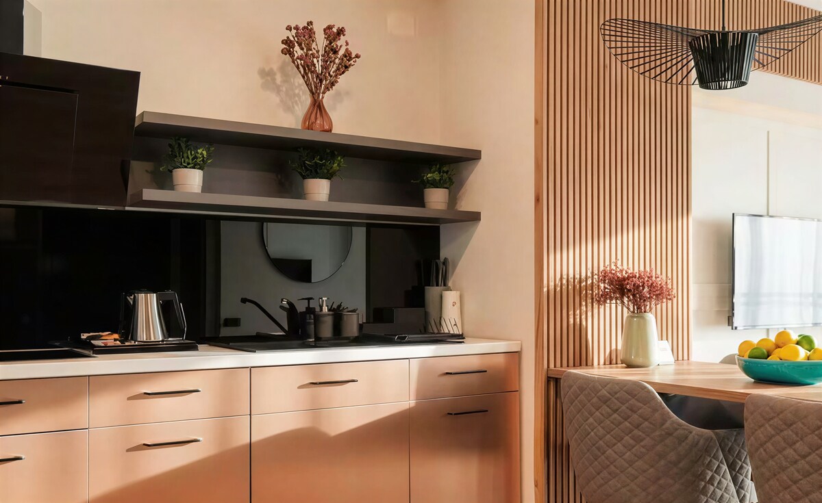 ¿Viajas por trabajo o necesitas un espacio profesional y cómodo cerca del aeropuerto de Cluj? Este apartamento totalmente equipado se encuentra a solo 5 minutos y ofrece todo lo necesario para una estancia productiva y relajante. Check-in autónomo, wifi de alta velocidad y servicios de primera calidad incluidos. Diseñado pensando en los viajeros de negocios, el apartamento combina interiores elegantes y modernos con características inteligentes y un entorno tranquilo, ideal para trabajar y relajarse. Disfruta de una experiencia de alojamiento de alto nivel.