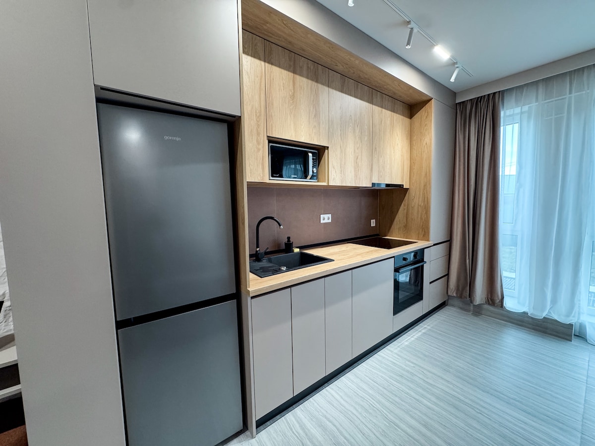 Relájate en un apartamento moderno y acogedor con vistas al jardín, lejos del concurrido tráfico. El espacio de almacenamiento prolongado, una cocina totalmente equipada y un escritorio de oficina moderno son solo algunos de los artículos que harán que tu estancia sea relajante y agradable al mismo tiempo. A la vuelta de la esquina, puedes encontrar un supermercado Profi 24/7, un gimnasio, una farmacia y un mercado de comestibles local. Un paseo de 10 minutos te llevará al centro comercial Iulius o a 13 minutos en autobús hasta la zona central de Cluj.