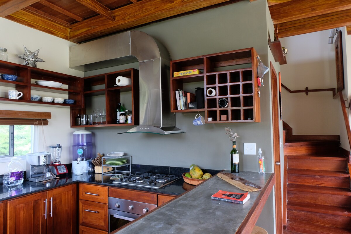 Pequeña casa de campo muy acogedora pero espaciosa escondida entre los árboles y a solo 7 minutos en coche del centro de Boquete. La casa tiene lavadora y secadora y unos acabados muy bonitos. Una cómoda cama tamaño king y una pequeña cocina con todos los utensilios necesarios para preparar el desayuno o una pequeña comida. El transporte público está disponible justo al abrir la puerta y salir de las instalaciones. Servicio de wifi disponible y fiable. Agua caliente en la ducha, el lavabo y los grifos de la cocina.