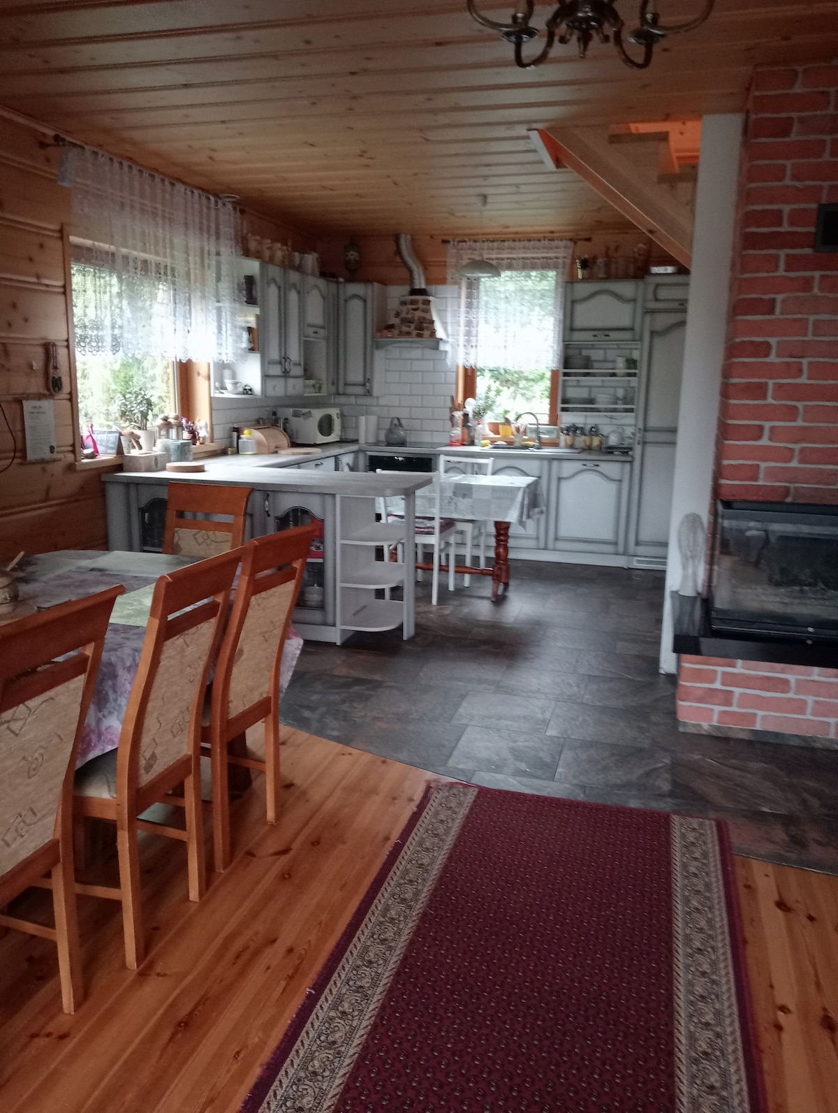 Encantadora casa de madera para una familia o un grupo de amigos, situada a solo 45 kilómetros de Varsovia (muy fácil acceso). La zona tranquila hace que sea un verdadero oasis de paz. Aquí puedes respirar aire fresco, dar un largo paseo por los bosques de los alrededores o dar un paseo en bicicleta. El interior, decorado en estilo rústico, es excepcionalmente acogedor. En verano, puedes descansar en la terraza o en una hamaca, y en invierno, encender un fuego en la chimenea y jugar a juegos de mesa. ¡Se admiten mascotas! ♥