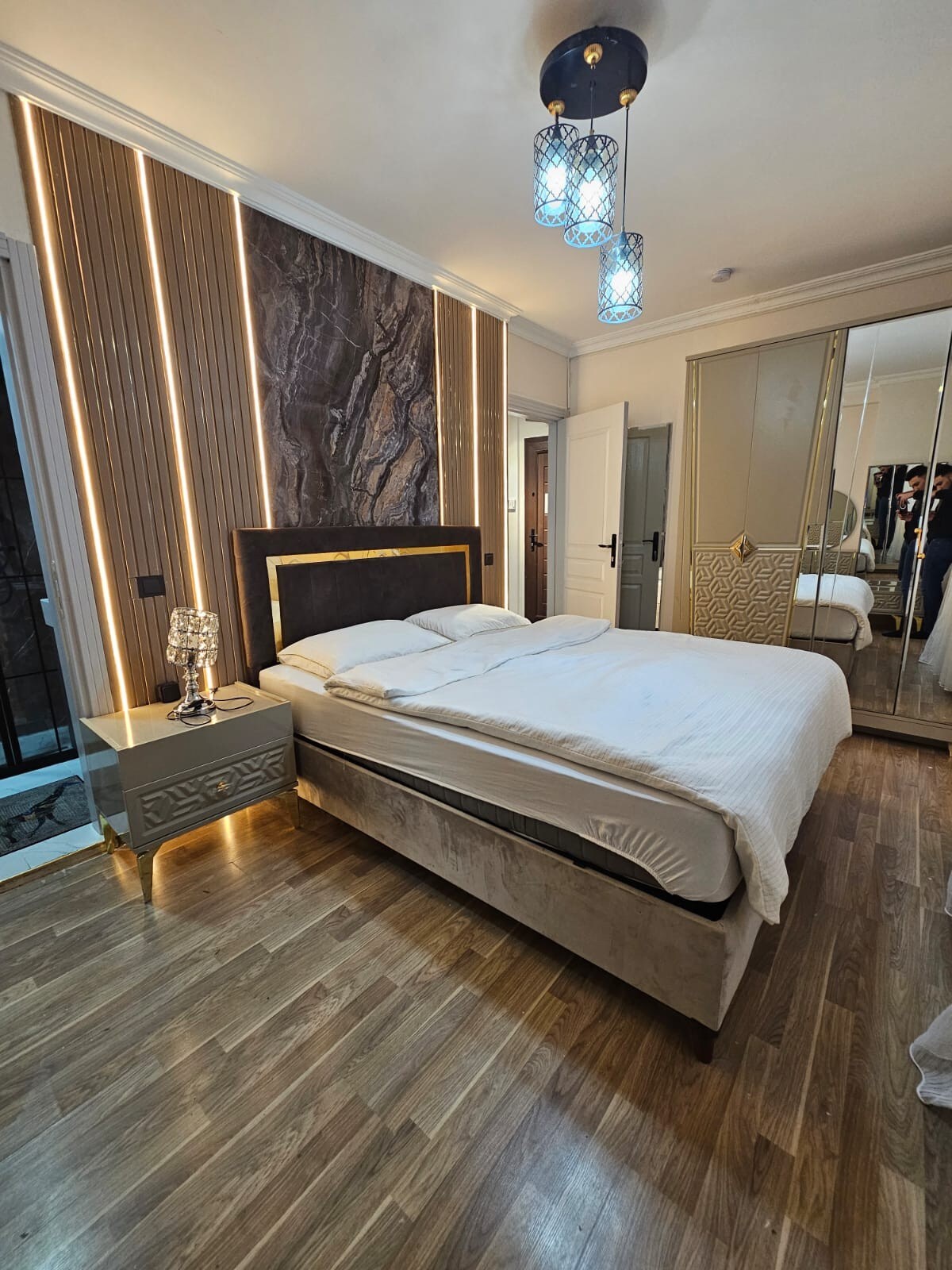 This duplex has three rooms (one master bedroom with home theater), 24h hot water, check in with helpful host, 500Mbps internet speed, very big saloon and very big kitchen. One side looks East which you can enjoy sunshine and other side looks West which gives peaceful sunset. All rooms and saloon have AC, PS5 and all Netflix, Hbo Video and Disney accounts. Duplex is on the top floor of a building which is top of an hill so there is a spectacular view. Its your complete home.