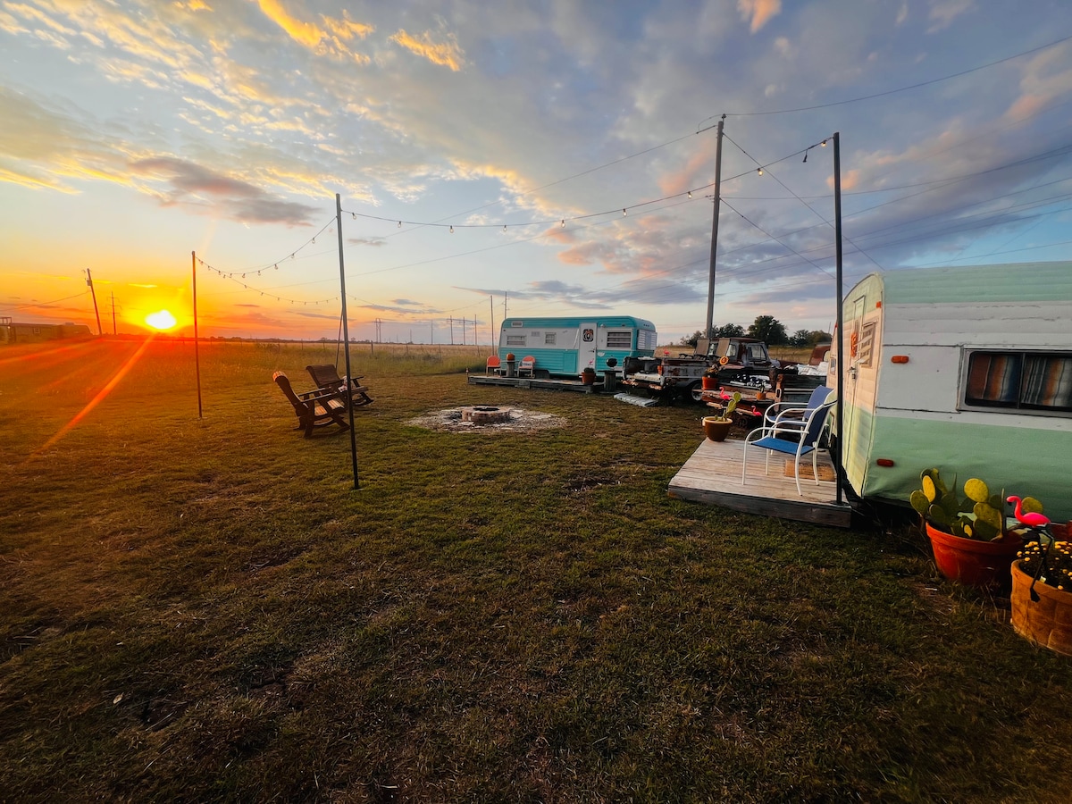 ¡Conoce a Margarita, nuestra caravana escocesa vintage de 1955! Ha sido completamente reconstruida en 2018, ¡pero mantiene mucho encanto y personalidad! Es perfecta para una escapada al campo para aquellos que aman acampar, pero quieren un lugar suave para acostarse con algunas comodidades encantadoras como café por goteo, una mininevera y una cama limpia y cómoda. Se sienta junto a la casa del rancho en Tailgate Ranch, a aproximadamente 1/2 milla del "centro" de Walnut Springs, ¡lleno de antigüedades, baile y compras!