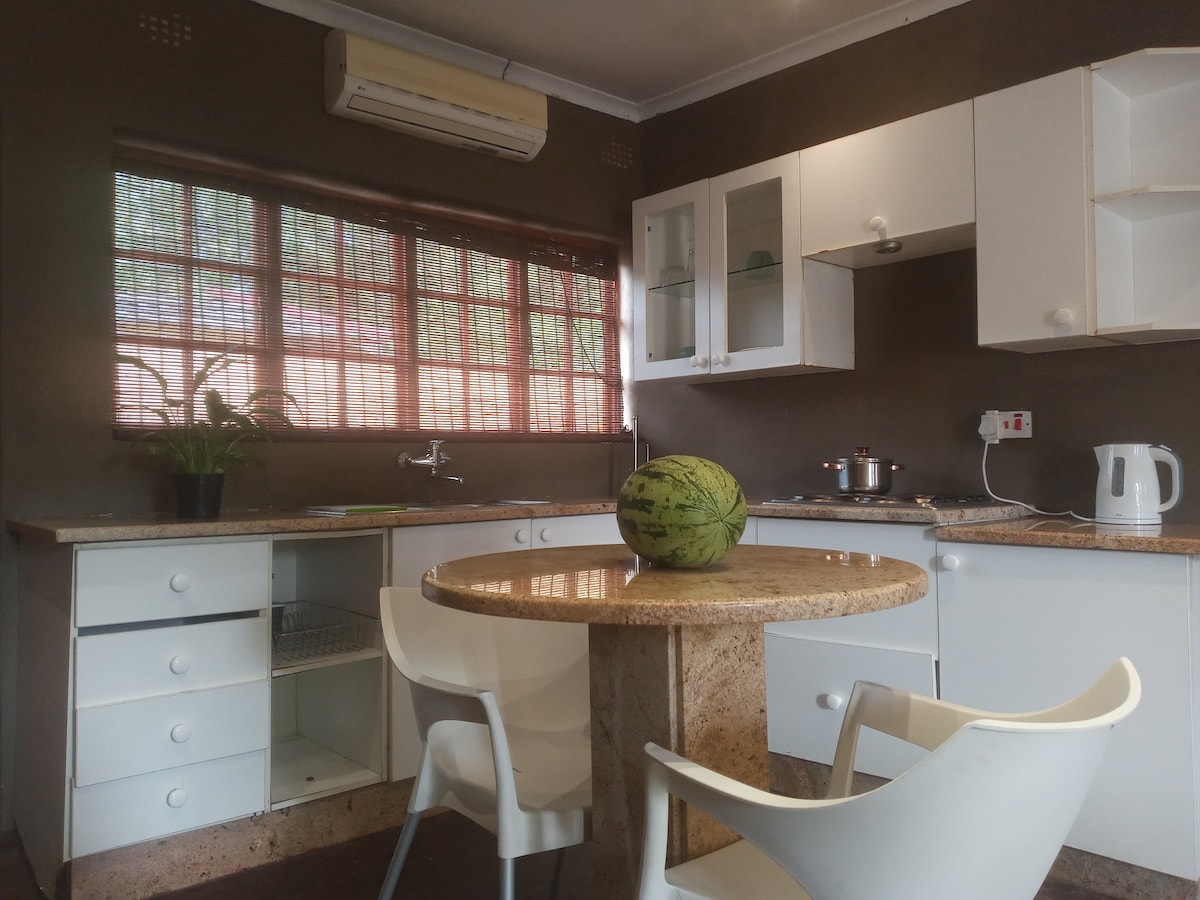 Este departamento moderno y elegante es perfecto tanto para parejas como para viajeros de negocios. Cuenta con paz, tranquilidad y la calma de estar en una ciudad metropolitana. Está a tiro de piedra del Sebele Mall y del Airport Junction Mall, lo que lo hace accesible a una gran cantidad de restaurantes y supermercados.