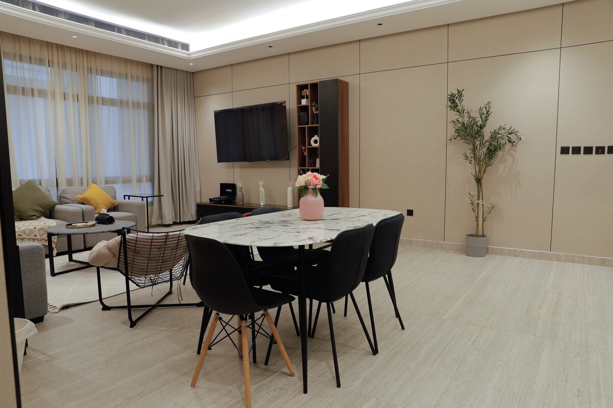 Ubicación destacada: A solo 6 minutos de Boulevard World, el primer destino de entretenimiento en Riad. Y a solo 13 minutos del distrito financiero King Abdullah (KAFD), lo que lo hace ideal para viajeros de negocios o de placer. Ya sea que estés en Riad por trabajo, para relajarte o por aventura, este departamento te ofrece la combinación perfecta de comodidad, servicios modernos y una ubicación céntrica para que tu estadía sea inolvidable.