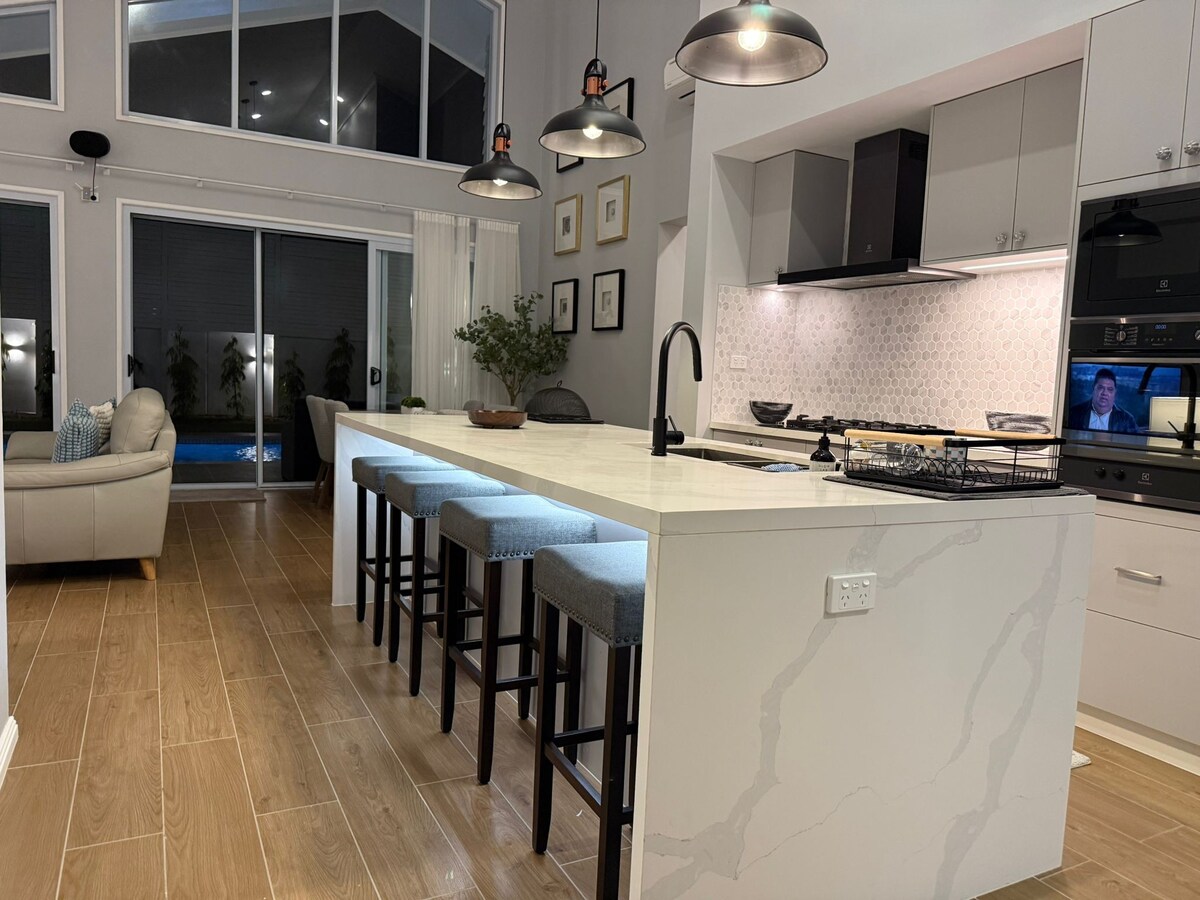 “Donde la elegancia de los Hamptons se encuentra con el paraíso fiyiano” Este elegante alojamiento es perfecto para viajes en grupo. Relajate en esta espaciosa villa de lujo estilo Hamptons en The Palms. Perfecto para familias numerosas o grupos, cuenta con 4 dormitorios grandes con baño privado, una cocina moderna totalmente equipada, sala de estar abierta y una piscina privada estilo resort. Ubicado en una finca cerrada segura a pocos minutos de la playa, el aeropuerto y el puerto de Denarau. Este alojamiento nuevo ofrece comodidad, elegancia y espacio en el corazón de Nadi.