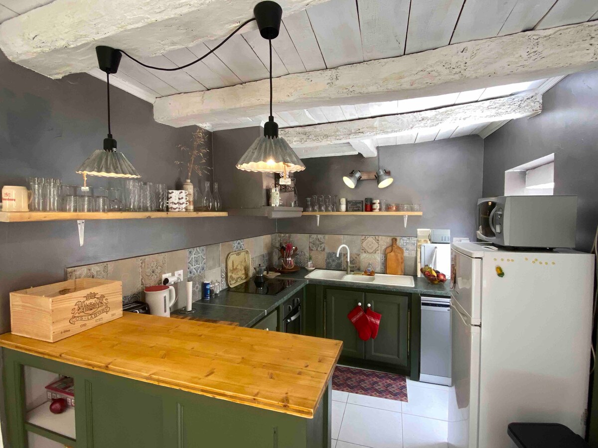 A la campagne, proche du centre-bourg, dans notre cours petite maison de 35m2 indépendante pour votre tranquillité. Parfaite pour accueillir 2 adultes et 2 enfants confortablement lors d'un séjour dans notre charmante région ou lors de vos déplacements professionnels. Le logement dispose de tout le confort moderne. Proche de BORDEAUX et SAINT EMILION (30min) A 5 min à pied du centre bourg avec toutes commodités.