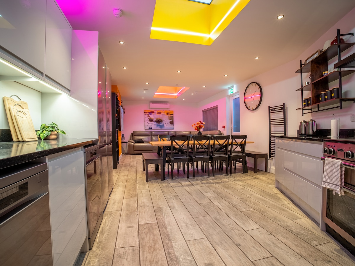 La casa n.º 31 es una casa llamativa y lujosa situada en el centro de Bmth. Elegante y peculiar, con un toque vintage divertido y fabuloso. Pasá un rato en el gran comedor de la cocina, jugá al pool en tu propio bar retro o cená al aire libre en el práctico espacio exterior. El número 31 está a pocos pasos de restaurantes, bares y tiendas y a poca distancia a pie de la playa. Esta lujosa almohadilla es ideal tanto para amigos como para familias: todas las habitaciones pueden ser súper reyes o camas individuales. Estacionamiento para al menos dos autos.