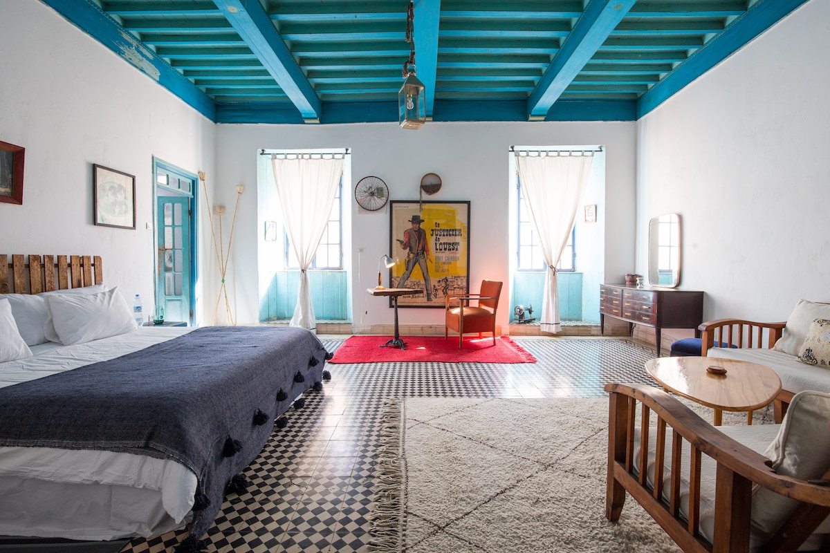 El refugio de MarOne ofrece un encantador estudio en el primer piso ubicado en el corazón de la encantadora medina antigua de Esauira, a solo 2 minutos a pie del parque, a pocos pasos del puerto, la plaza principal y la playa. Este acogedor estudio cuenta con una acogedora sala de estar/minicocina/inodoro con ducha y un dormitorio principal (en suite). Situado dentro de una casa tradicional marroquí, ofrece una oportunidad única para sumergirse en el auténtico estilo de vida de la población local y abrazar una nueva experiencia cultural.