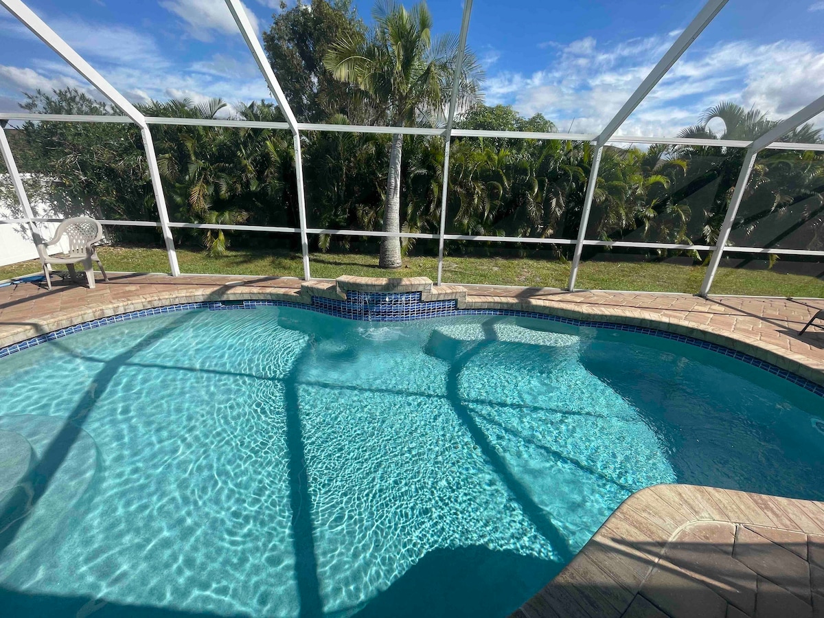 Impresionante, remodelado 3 dormitorios, 3 baños en la costa de Fort Myers. Planta abierta con 1400 pies cuadrados de espacio habitable, 1500 pies cuadrados adicionales de espacio al aire libre (lanai protegido y piscina climatizada). Cocina grande de ensueño para entretenerse y cocinar. ¡Abre todas las puertas al lanai! Situado en un canal de agua salada a pocos minutos de aguas abiertas y del golfo de México. Playas en abundancia con Sanibel, Ft Myers y Cape Coral a 15 minutos. Vida nocturna, restaurantes y atracciones locales cerca. Capacidad máxima para 10 personas. Anfitrión: Ramses Meijer /WerkMagic