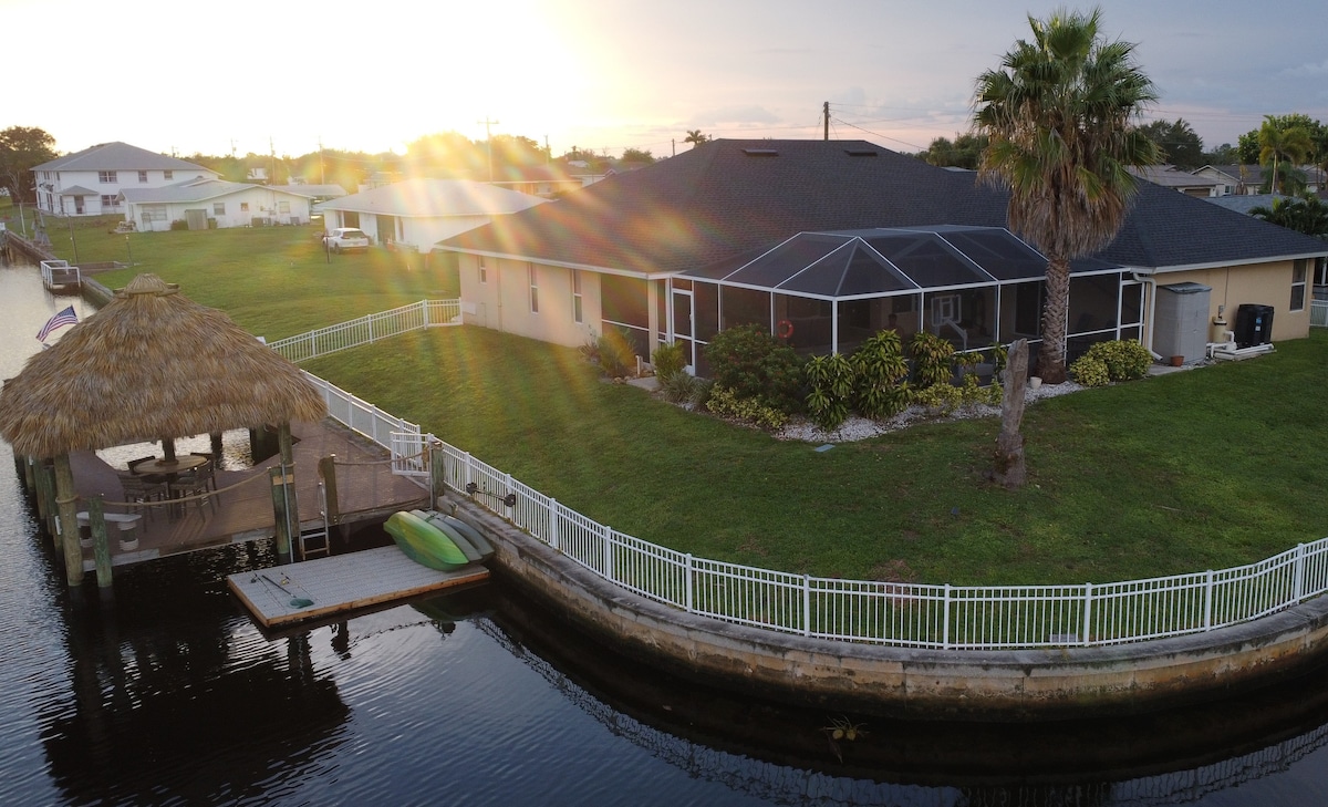 ¿Te gustaría nadar, relajarte al aire libre, pescar y disfrutar de hermosas puestas de sol en un amplio canal de acceso al golfo? Si es así, ¡te enamorarás de esta impresionante casa de nueva construcción hecha a medida! La casa de 2750 pies cuadrados es luminosa y espaciosa, con dos dormitorios principales en suites y un ala familiar separada. ¡La cocina gourmet, el comedor y la gran sala se abren a través de grandes ventanales al lanai y la piscina con vistas al canal en el muy deseado suroeste de Cape! ¡Villa inspirada en la playa! ¡Gran paseo de capitanes y Tiki! ¡Echa un vistazo a nuestras evaluaciones!