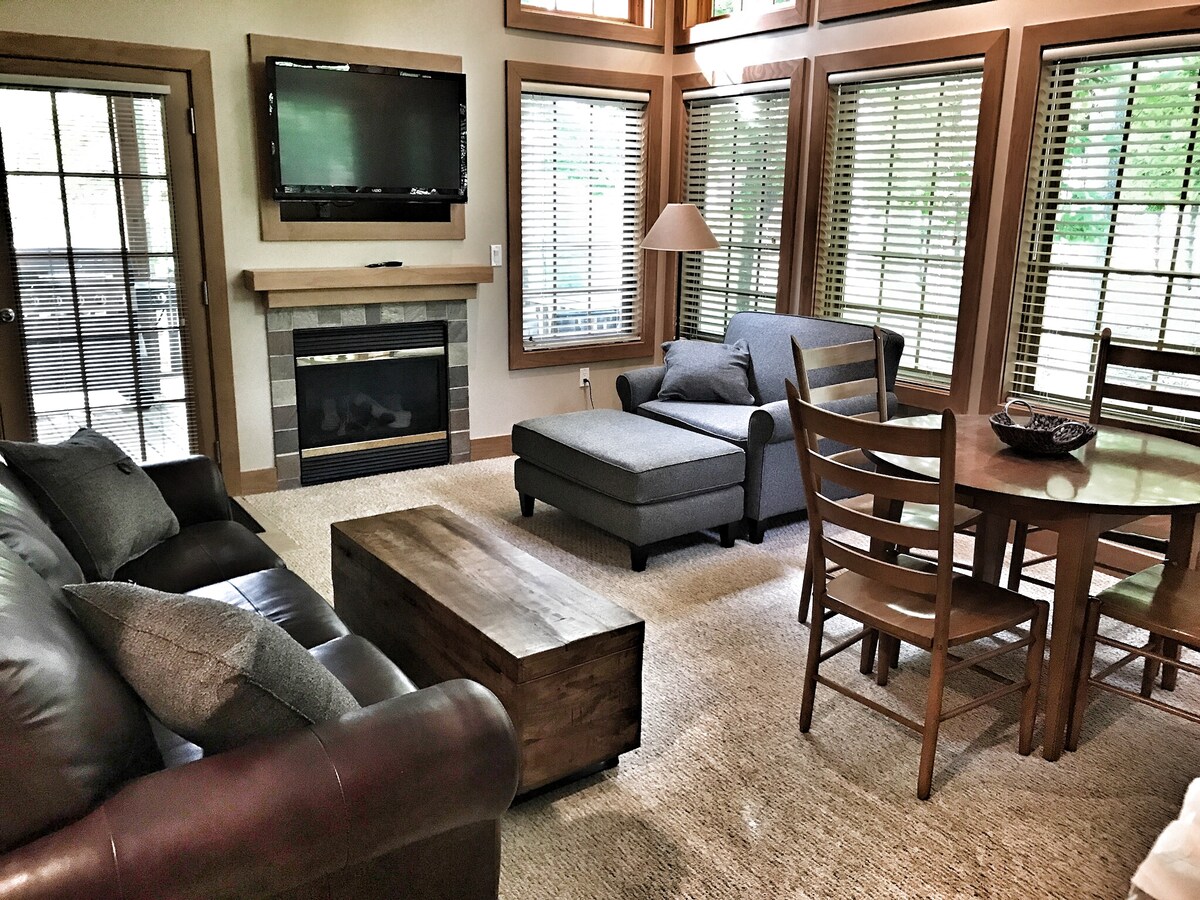 ¡Ubicado en la base de Boyneland y a pocos pasos de los ascensores! El apartamento está en el edificio R de las villas de montaña. Nuestros huéspedes pueden disfrutar del esquí, el golf, el parque acuático Avalanche Bay, The Spa at Boyne Mountain, Zip Lines y todo lo que Boyne tiene para ofrecer (no incluido en el precio de tu estancia). ¡Visita el sitio web de Boyne Mountains para explorar esas actividades!