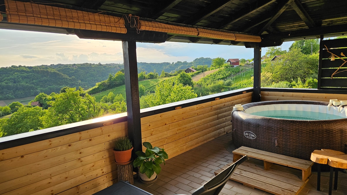 Nuestra hermosa finca se encuentra a 40 km de Zagreb, en Zagorje, una de las regiones más coloridas de Croacia continental. La finca se encuentra en un maravilloso terreno de 2000 m2 y está lleno de plantas, árboles y flores extraordinarias. La orientación de la finca es SW-W, que da a los huéspedes tanto un sol durante el día como una vista asombrosa con la puesta de sol. Tres puntos principales de la finca son la villa principal, la piscina y la casa de huéspedes rústica. La villa principal está rodeada de las dos amplias terrazas que entran en la planta baja con mesa de comedor para diez, cocina agradable y totalmente equipada y una enorme sala de estar con la chimenea. La esquina de Bella Vista con cinco sillones cómodos está situada en una parte oeste de la planta baja. ¡La vista y la puesta de sol son impresionantes! En el primer piso se puede encontrar el dormitorio principal con la enorme terraza, bonito baño jacuzzi y un espacio más pequeño con un sofá cama para dos. En el segundo piso hay otro dormitorio con cama doble, baño con la ducha de masaje y un vestíbulo con una mesa de escritura antigua y soffa para dos. La piscina está a 8,5 x 4,5 m, equipada con la máquina de natación y la ducha solar. La piscina está abierta desde 1,5.-15.10. La casa de huéspedes está cerca de la piscina. Es una casa rústica con el gran porche. Tiene una cocina, baño, sala de estar y un dormitorio muy bonito en el segundo piso con vistas a la piscina. La finca está en una zona muy tranquila y relajante llena de pequeñas ciudades, pueblos con productos alimenticios nacionales y castillos históricos. Al mismo tiempo, está muy cerca de la capital croata de Zagreb (a 30 minutos en coche), de la costa croata (a menos de dos horas en coche) o de los lagos de Plitvice (a 90 minutos en coche). COCINA diaria, el servicio de limpieza puede ser organizado de forma adicional por nuestro Nada, que es muy bueno para preparar especialidades domésticas. ¡Ven y disfruta! ¡ Este es un verdadero paraíso en cualquier época del año!