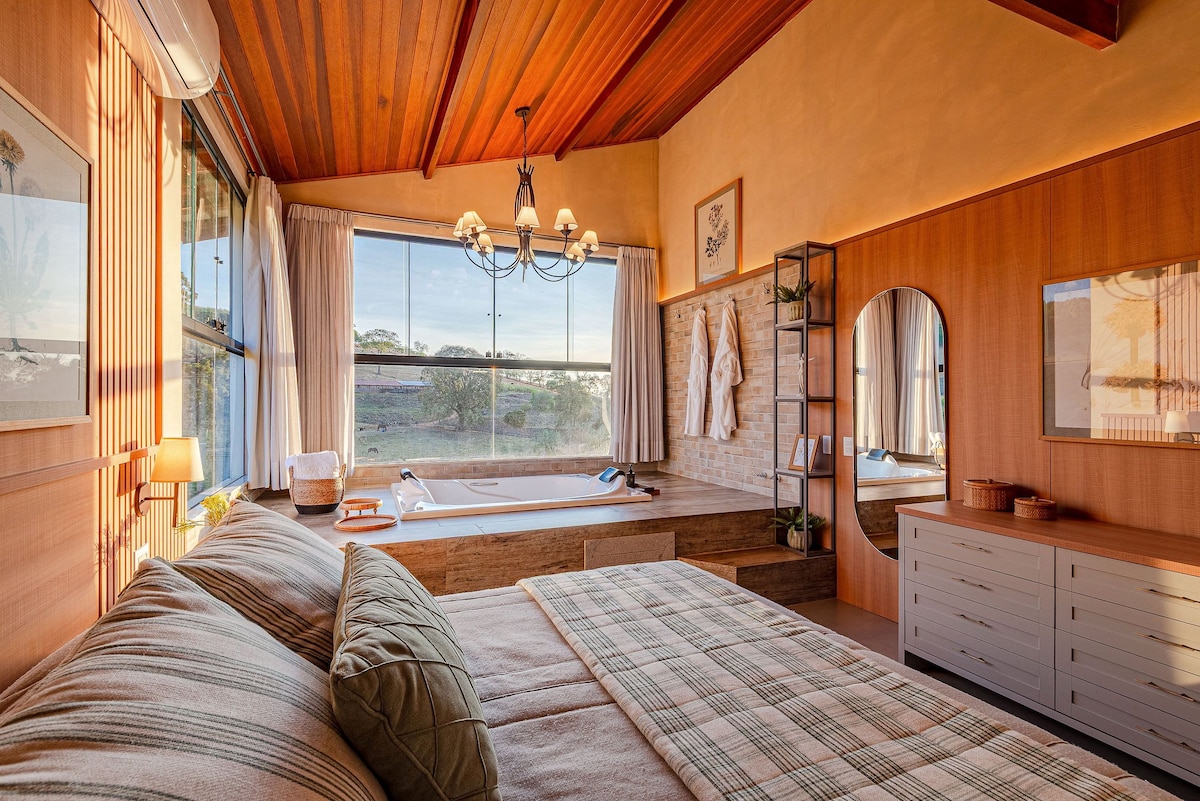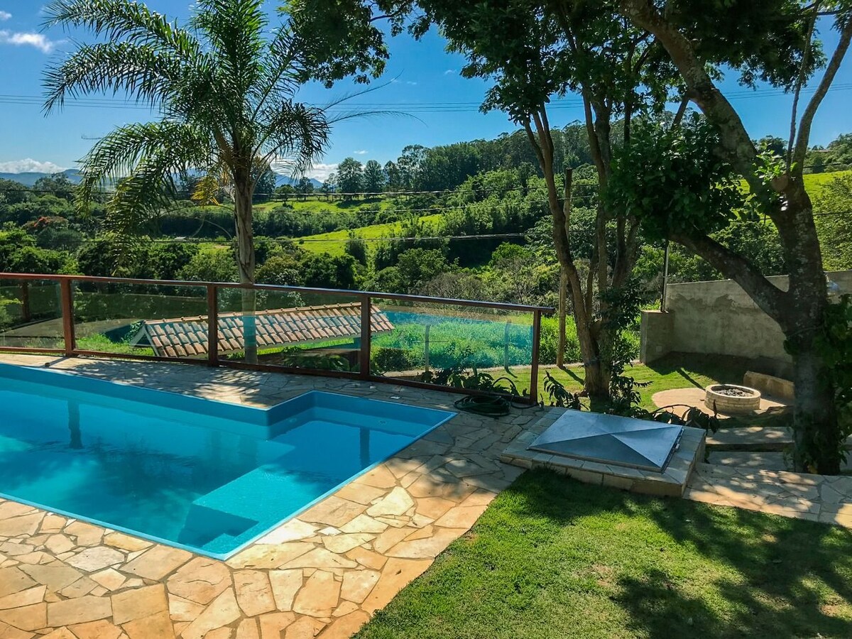 Espectacular Chalé ubicado en la cima de una hermosa montaña entre Bragança Paulista y Tuiuti. Mercado cercano y restaurantes con entrega a domicilio. Lago para pescar. Huerto orgánico y huerto, piscina con aire acondicionado sin cloro, animales de compañía, cancha de fútbol, barbacoa, chimenea. Sala de oficina en casa exclusiva con wifi fantástico. Las mascotas son muy bienvenidas. Se proporcionan sábanas de cama y baño. Se permite el ruido fuerte. La propiedad tiene una casa más, también se alquila para la temporada.