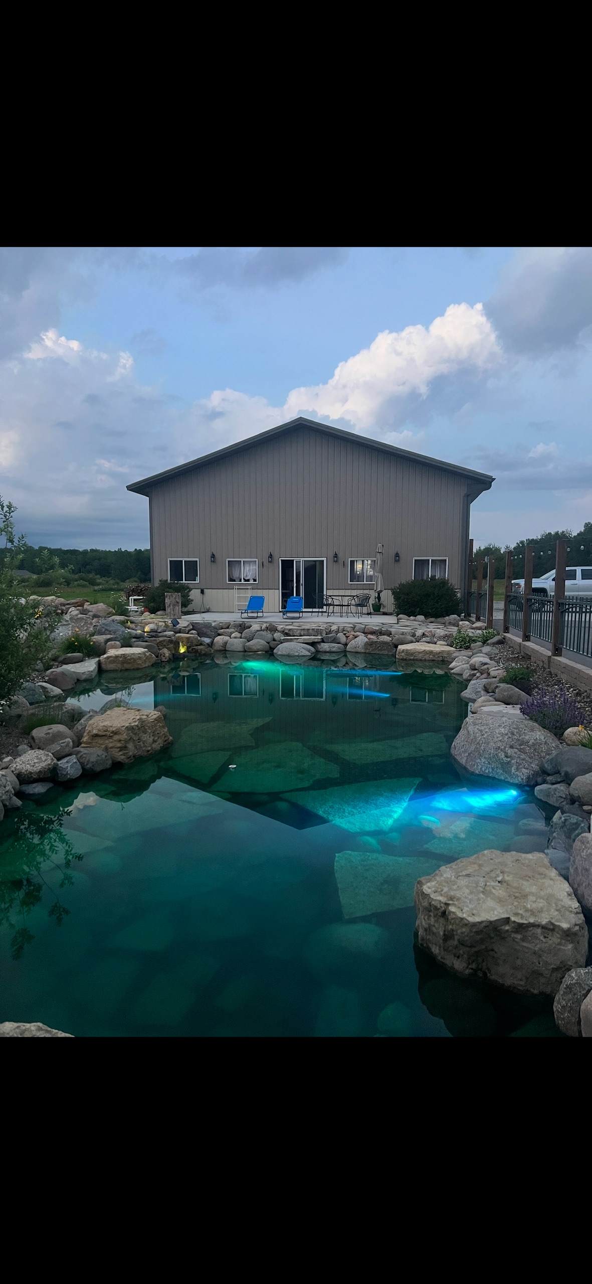 Get away from it all when you stay under the stars. Having a beautiful man made pond with waterfalls, night lights, beach, and patio. Great for the kids or a romantic get away. House as a modern, and beach vide look to it. Perfect for a couples get away! plenty of fun board games to keep the family busy as well.