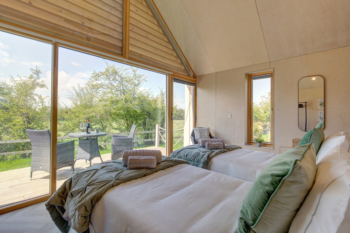 Shepherd's Hut es una magnífica cabaña de nueva construcción, escondida en una ubicación idílica y tranquila con hermosas vistas panorámicas al campo de gran alcance. Este lujoso escondite es el lugar perfecto para escapar con comodidad, su cama tamaño king súper cómoda, su ducha contemporánea, cocina totalmente equipada,encantadora sala de estar con TV y una estufa de leña . Hay una terraza, muebles de exterior y una parrilla, diseñados para disfrutar de las vistas panorámicas del campo. ¡Los perros son bienvenidos! Bajo supervisión en todo momento