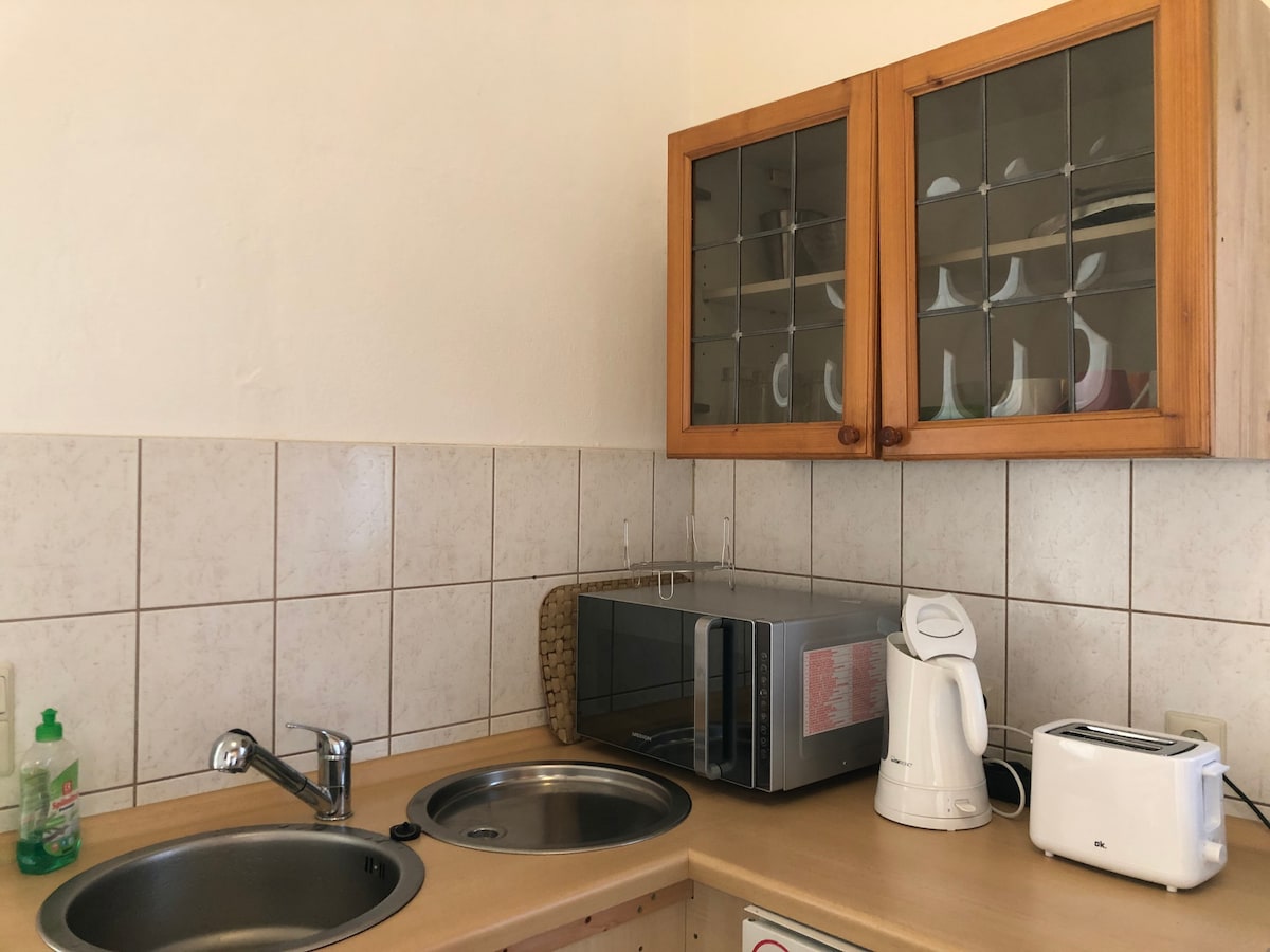 Apartamento de 45 metros cuadrados bellamente diseñado. Con acceso independiente desde la casa principal o desde el Schlosspark Plaue . Junto a la casa trasera se encuentra el taller de cerámica, con mucho gusto visita :-) , y mi sala de estar... A 150 m a través del parque del castillo se encuentra el encantador castillo morboso y la taberna del castillo justo en el lago...Todos los lugares visibles en las fotos, se puede llegar en 5 minutos a pie desde el loft... Las bicicletas eléctricas y los kayaks están disponibles para alquilar y tenis de mesa que pueden jugar...Saludos del alfarero