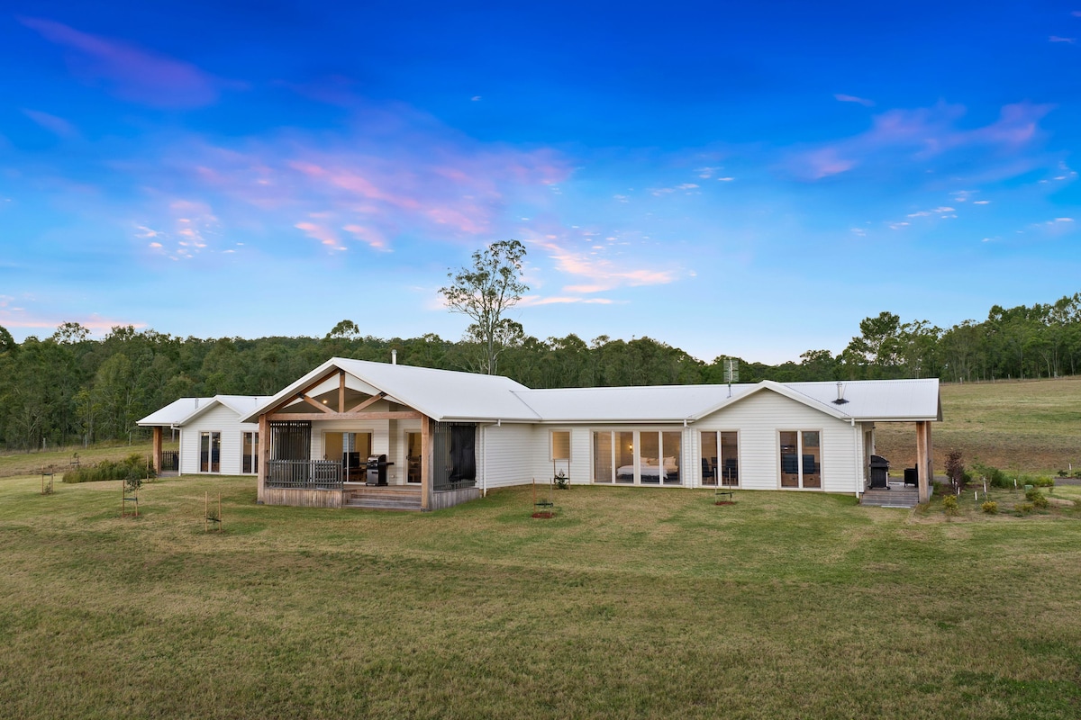 Relax, swim and walk around this beautiful farmstay on 150 acres. panoramic mountain and river views from every window. The Poolhouse has been upgraded with a new Spa and new Fireplace. Pls note there is a friendly Labrador and toy poodle that wander the farm. Pat the friendly horses and dogs Take in the beautiful sunrises W have just upgraded from a Queen bed to a brand new king size for master bedroom Not suitable for Parties suits families with kids