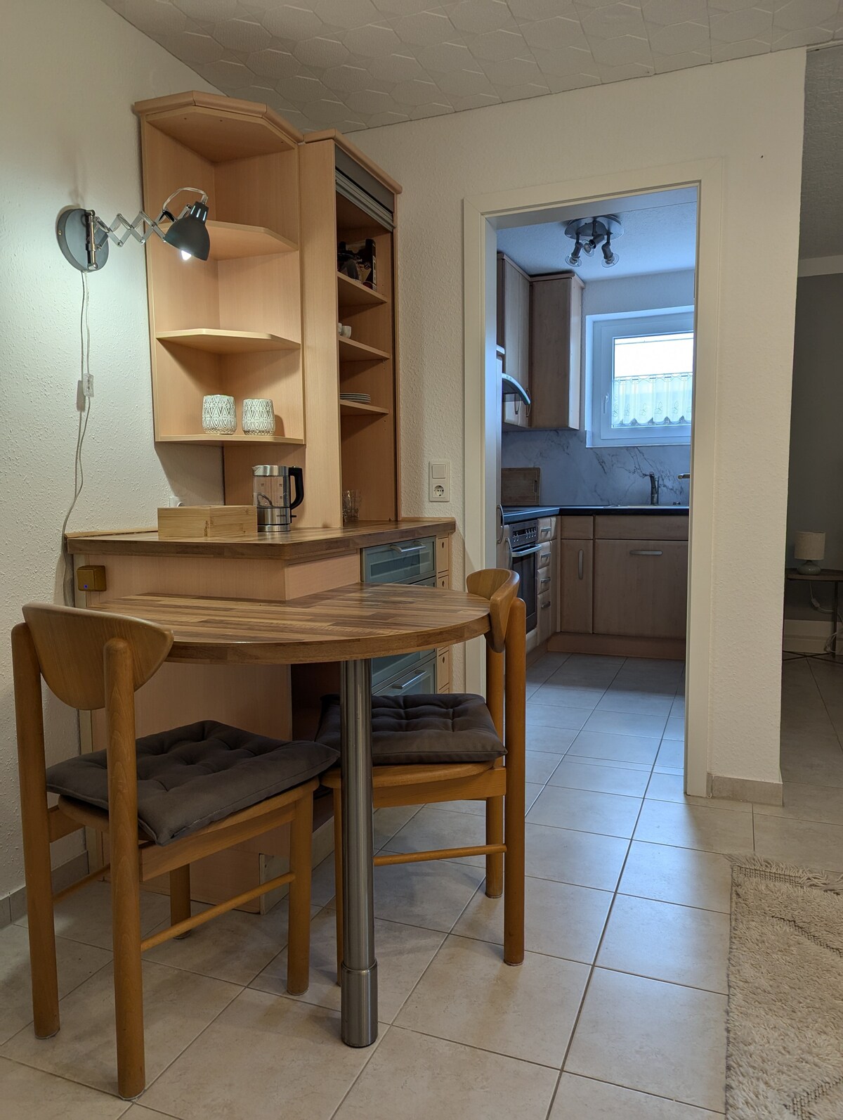 Moderne Ferienwohnung mit Fichtenholz-Flair Diese stilvolle Ferienwohnung bietet auf 36 m² einen komfortablen Rückzugsort. Ein Highlight ist die hohe Decke aus massivem Fichtenholz, die eine warme Atmosphäre schafft. Lage: Ländliche Ruhe, nur wenige Kilometer von Schwäbisch Hall entfernt. Ideal für Entspannung und Naturgenuss bei guter Anbindung an die Stadt. Aktivitäten: Wandern, Radfahren, Besuch des Freilandmuseums (zu Fuß erreichbar) oder Schwäbisch Hall erkunden