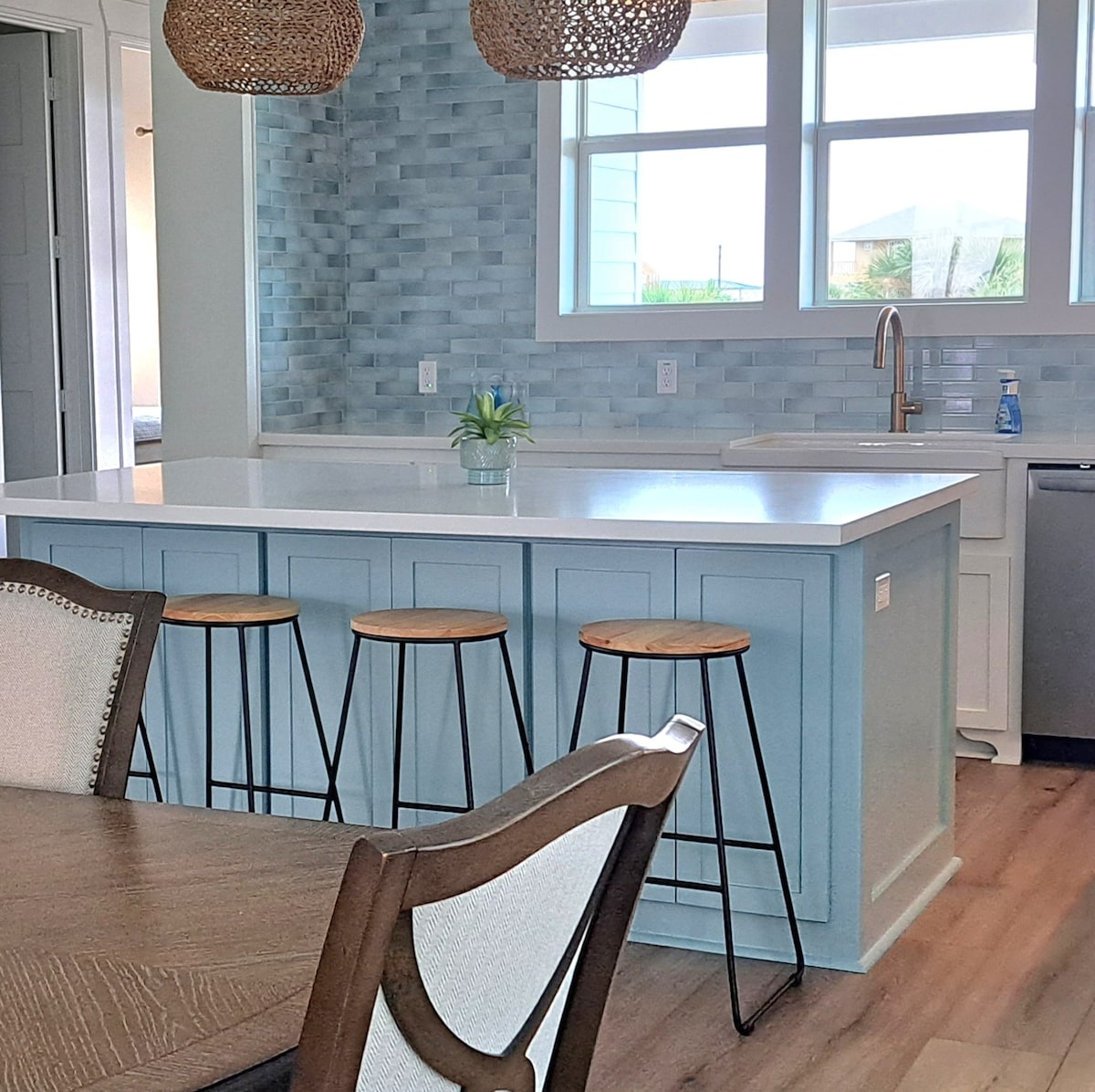 Stunning Sunrise and Sunset from both decks. Full bath for each bedroom. Minutes walk to beach, where you can bask in the sun on the expansive beach, shallow for littles, fly Texas size kite, hold hands walking the beach collecting seashells or watch pelicans soar. Fall in love with the stunning ocean-blue tiled kitchen featuring full windows view or grill out in paradise downstairs with family games. 🌴 Local store and restaurant within 5 minutes. Book in advance for savings! No beds to make!