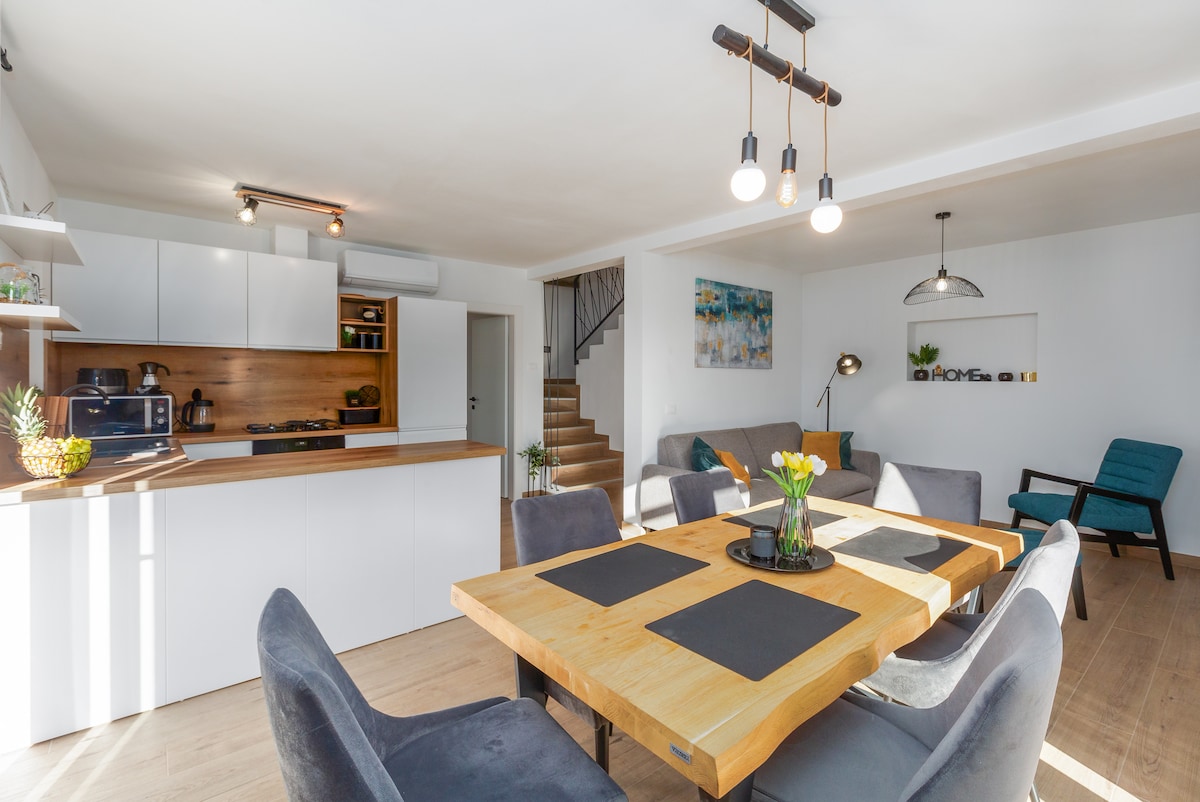 Villa Lente, una encantadora villa de nueva construcción en Istria, con piscina privada y jardín en el centro de Istria, es la combinación perfecta de diseño moderno y encanto tradicional de Istria para unas vacaciones agradables. Disfruta de la terraza, perfecta para relajarte junto a la piscina y el jardín, o prepara una deliciosa comida a la parrilla. El moderno salón de espacio abierto continúa en un agradable comedor y una cocina moderna y totalmente equipada con nevera para vino y máquina de hielo. Mantente conectado con wifi (Starlink) y TV LCD de pantalla grande en cada habitación.